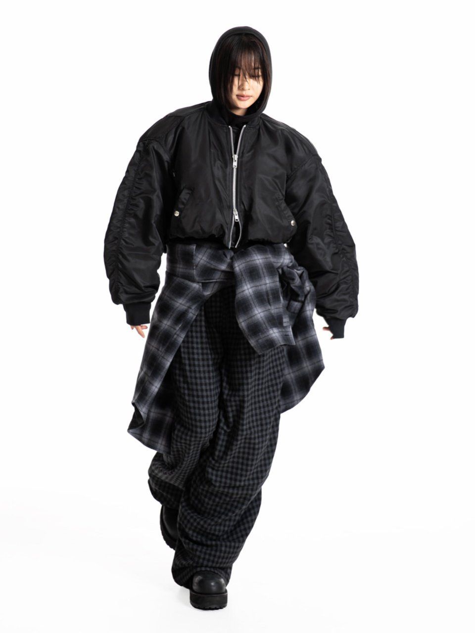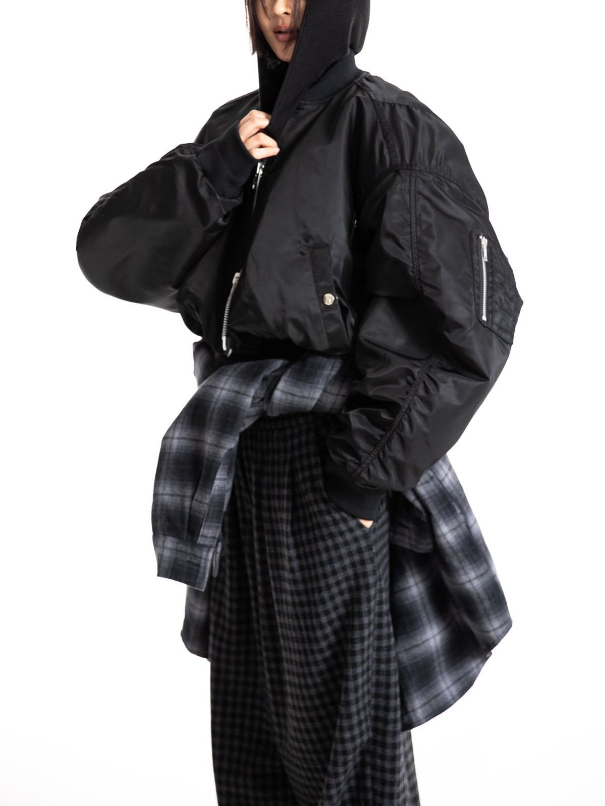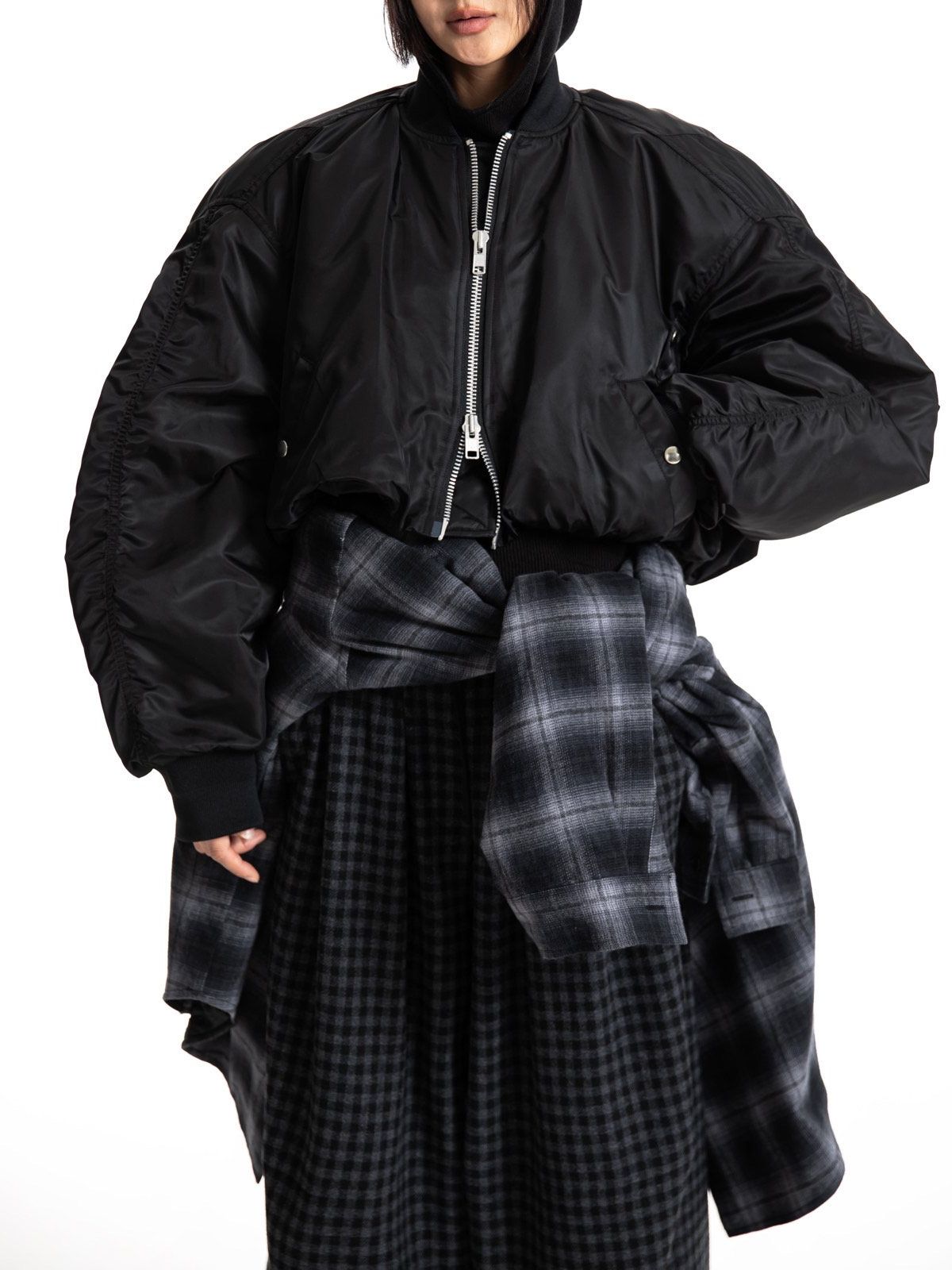 (PAPER MOON) HEAVY TWILL NYLON CROPPED BALLOON MA -1 FLIGHT JACKET : BLACK