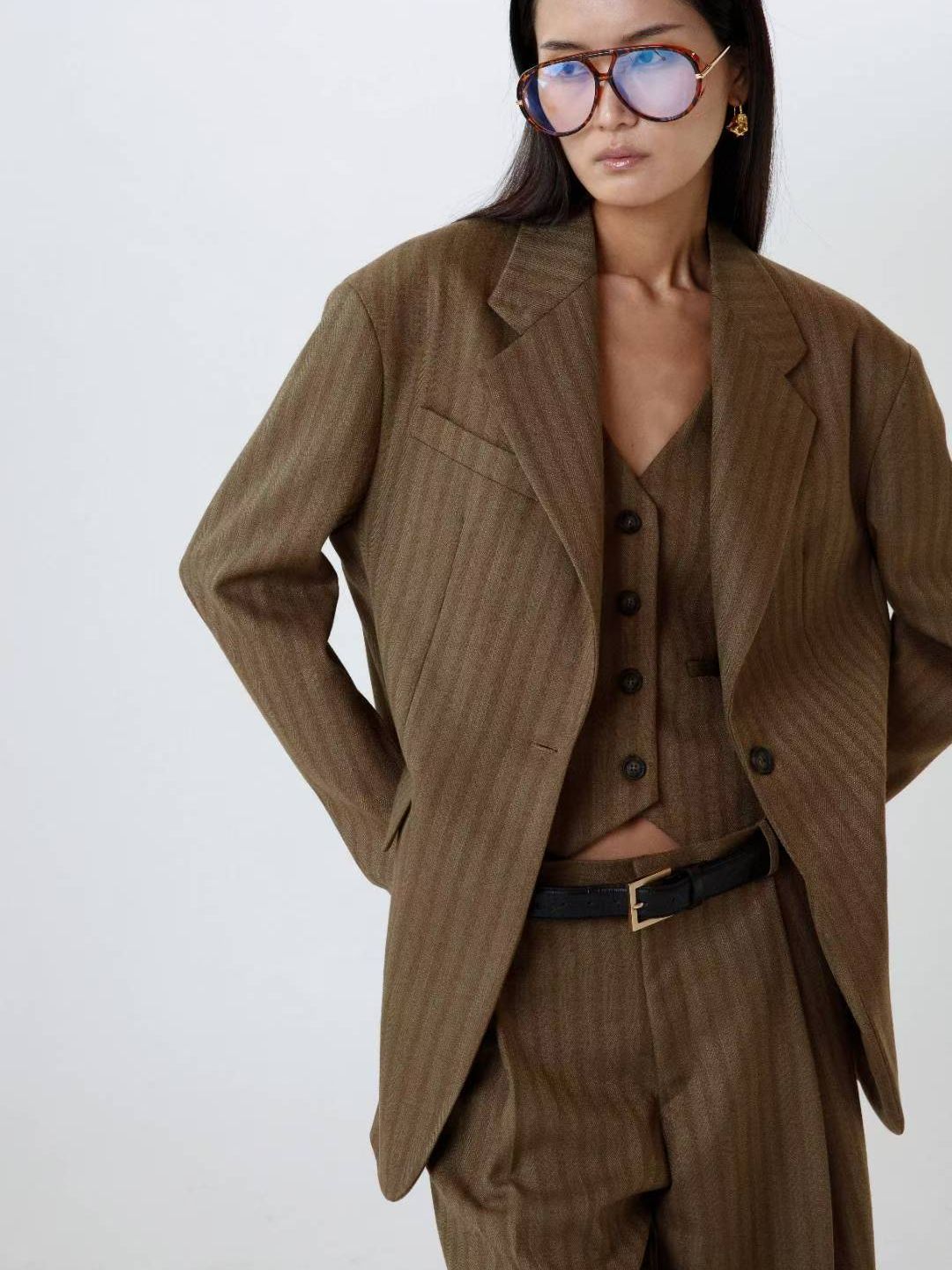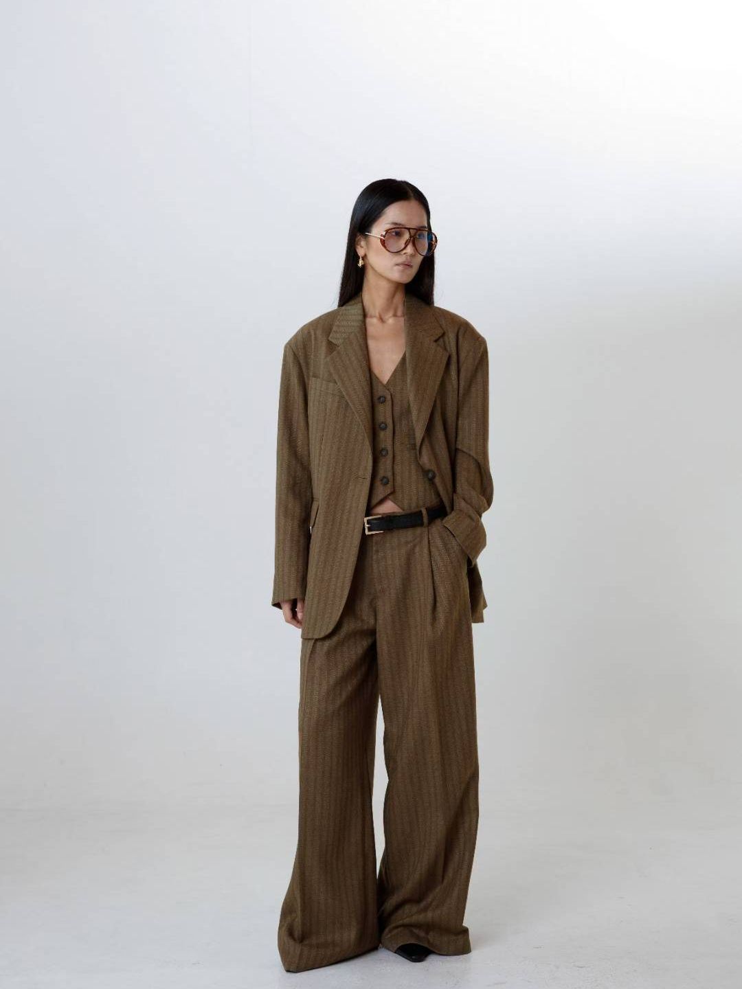 (ONE BY TWO) 25FW-5-9 3-PIECE SUIT (JACKET+VEST+PANTS) : BROWN STRIPE