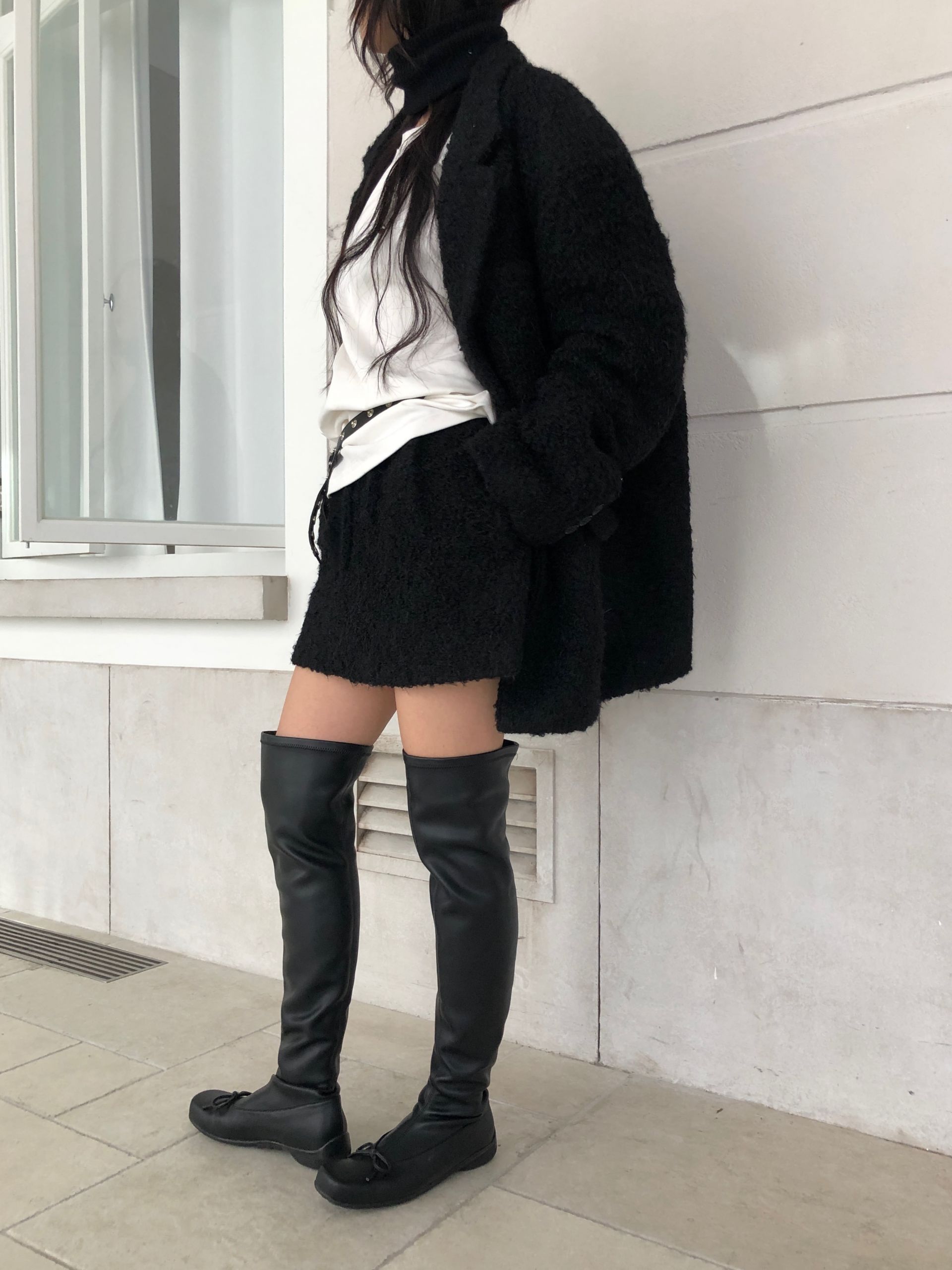 (TOM GIRL) BOUCLE WINTER SKIRT PANTS : BLACK