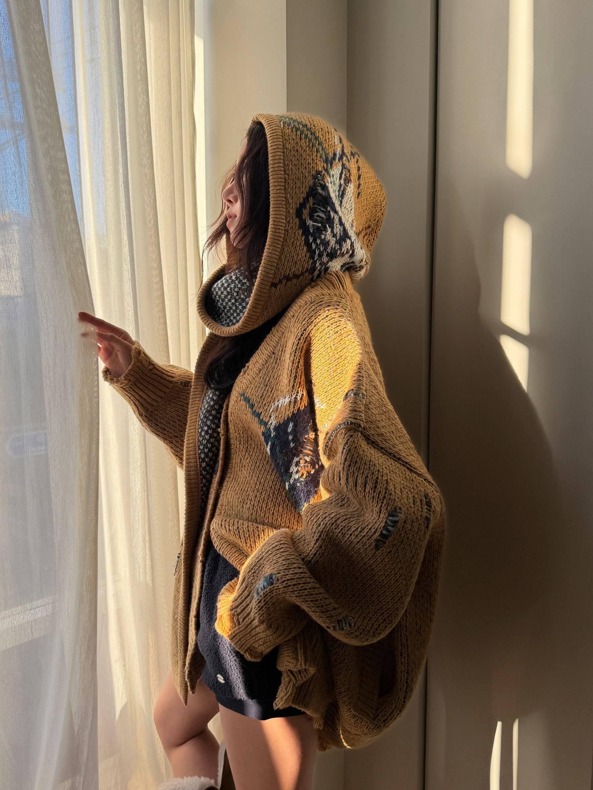 (TOM GIRL) AGAIL HOOD MUFFLER & CARDIGAN : BEIGE