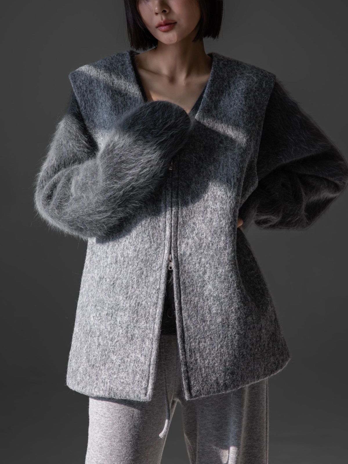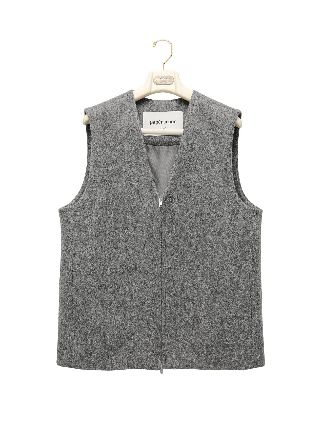 (PAPER MOON) ALPACA WOOL ZIPPED - UP VEST : HEATHER GREY