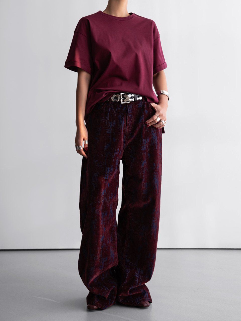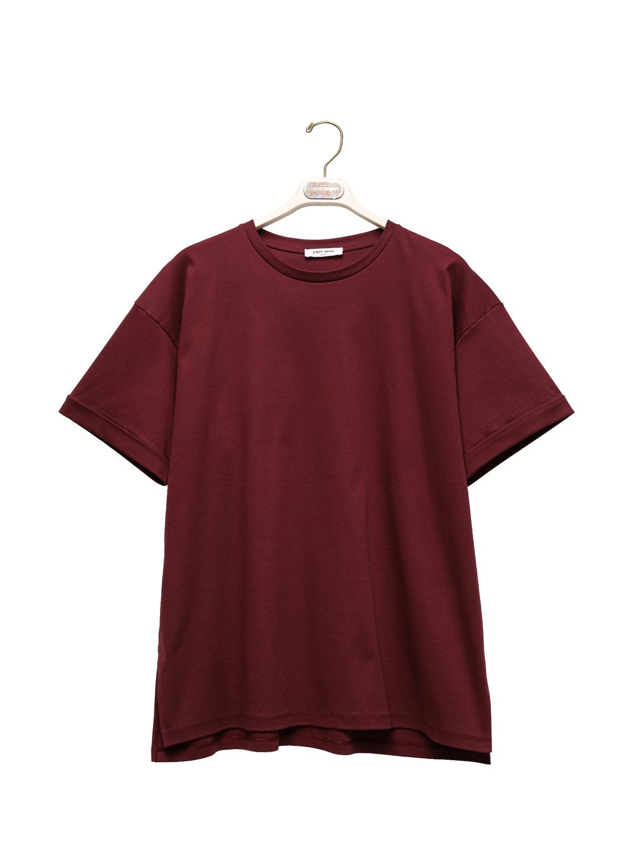 (PAPER MOON) PREMIUM OVERSIZED COTTON ROLLED UP T - SHIRT : BURGUNDY