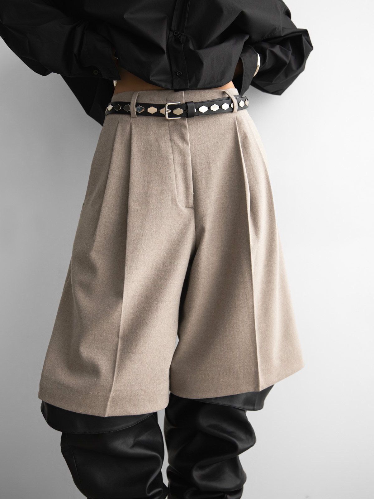 (PAPER MOON) FLANNEL WOOL SET - UP BERMUDA PANTS : BEIGE