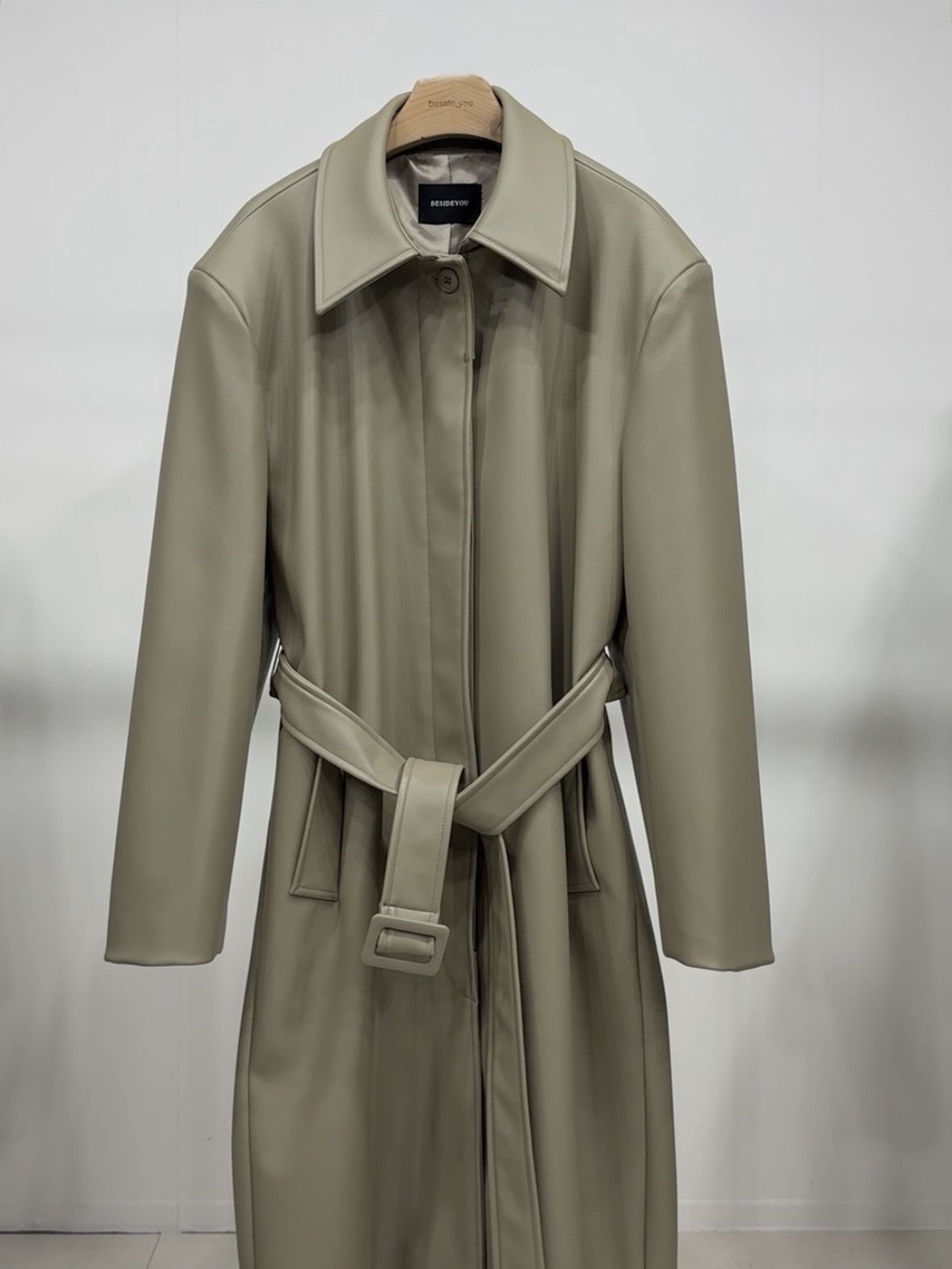 (BESIDE YOU) LEATHER FLOW COAT : KHAKI