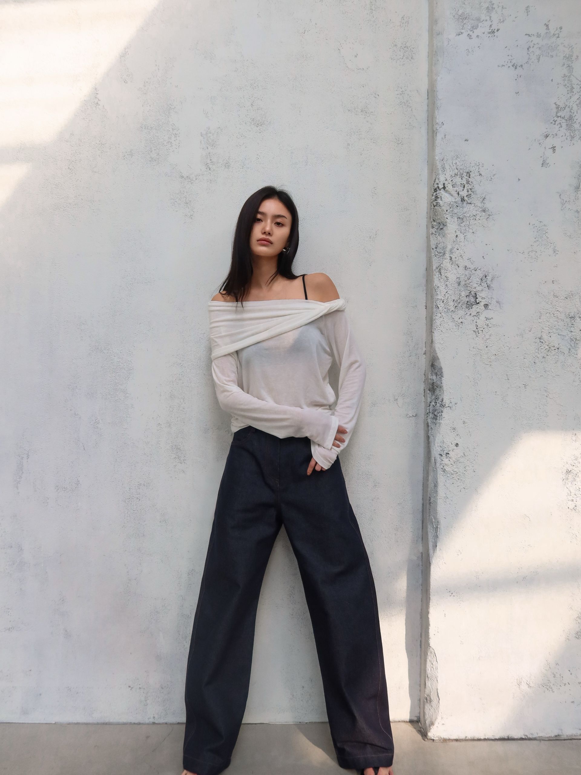 (BESIDE YOU) SHOULDER TWIST TOP : WHITE