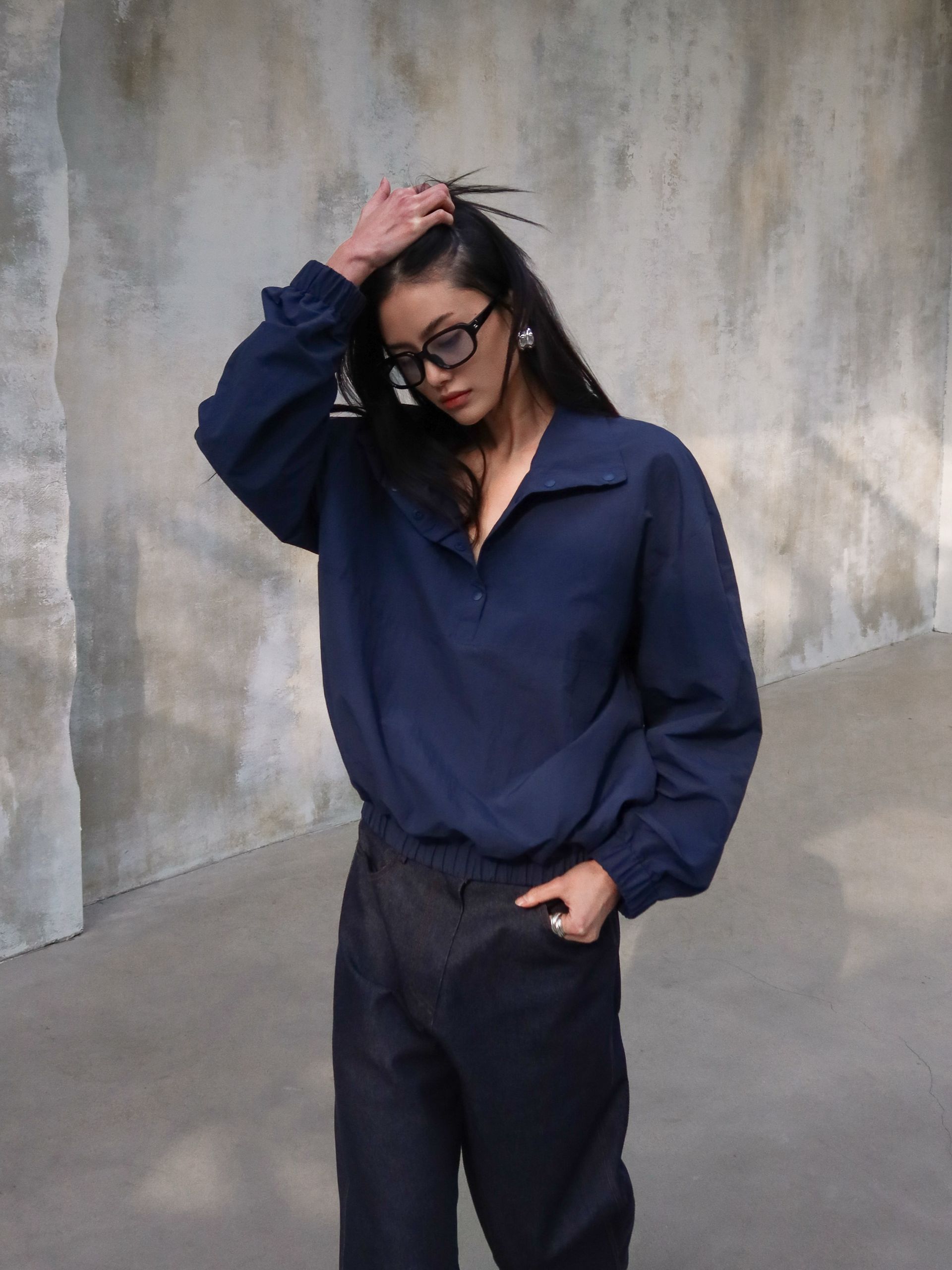 (BESIDE YOU) HALF SNAP ANORAK JACKET : NAVY