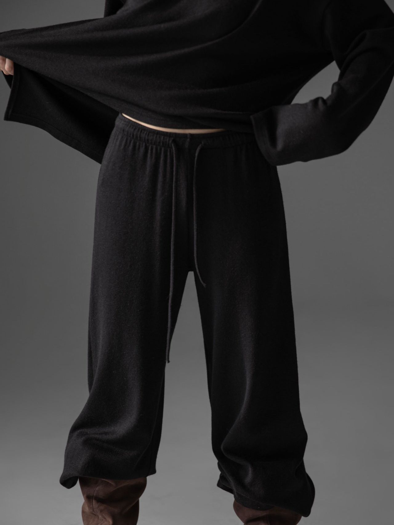 (PAPER MOON) SOFT LOUNGE SET - UP WIDE PANTS : BLACK