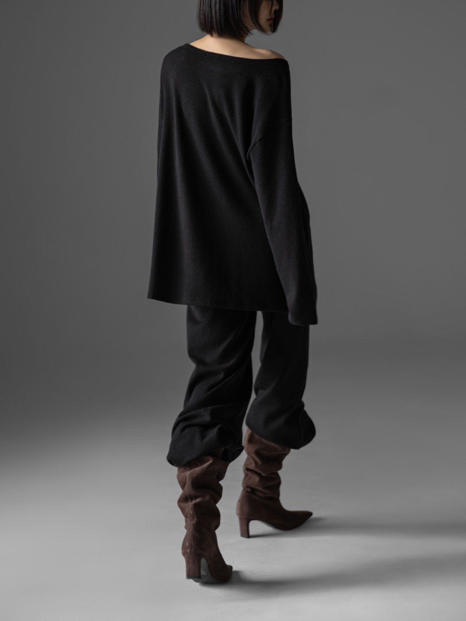 (PAPER MOON) SOFT LOUNGE SET - UP BOATNECK TEE : BLACK