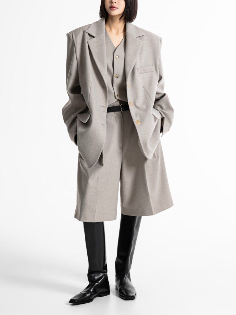 (PAPER MOON) FLANNEL WOOL SET - UP TAILORED BLAZER : BEIGE