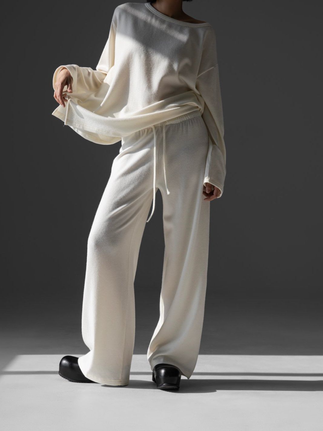 (PAPER MOON) SOFT LOUNGE SET - UP WIDE PANTS : CREAM