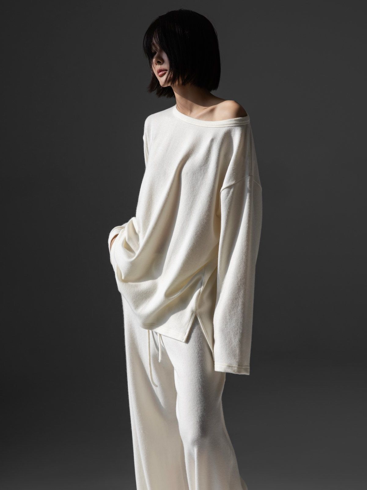 (PAPER MOON) SOFT LOUNGE SET - UP BOATNECK TEE : CREAM