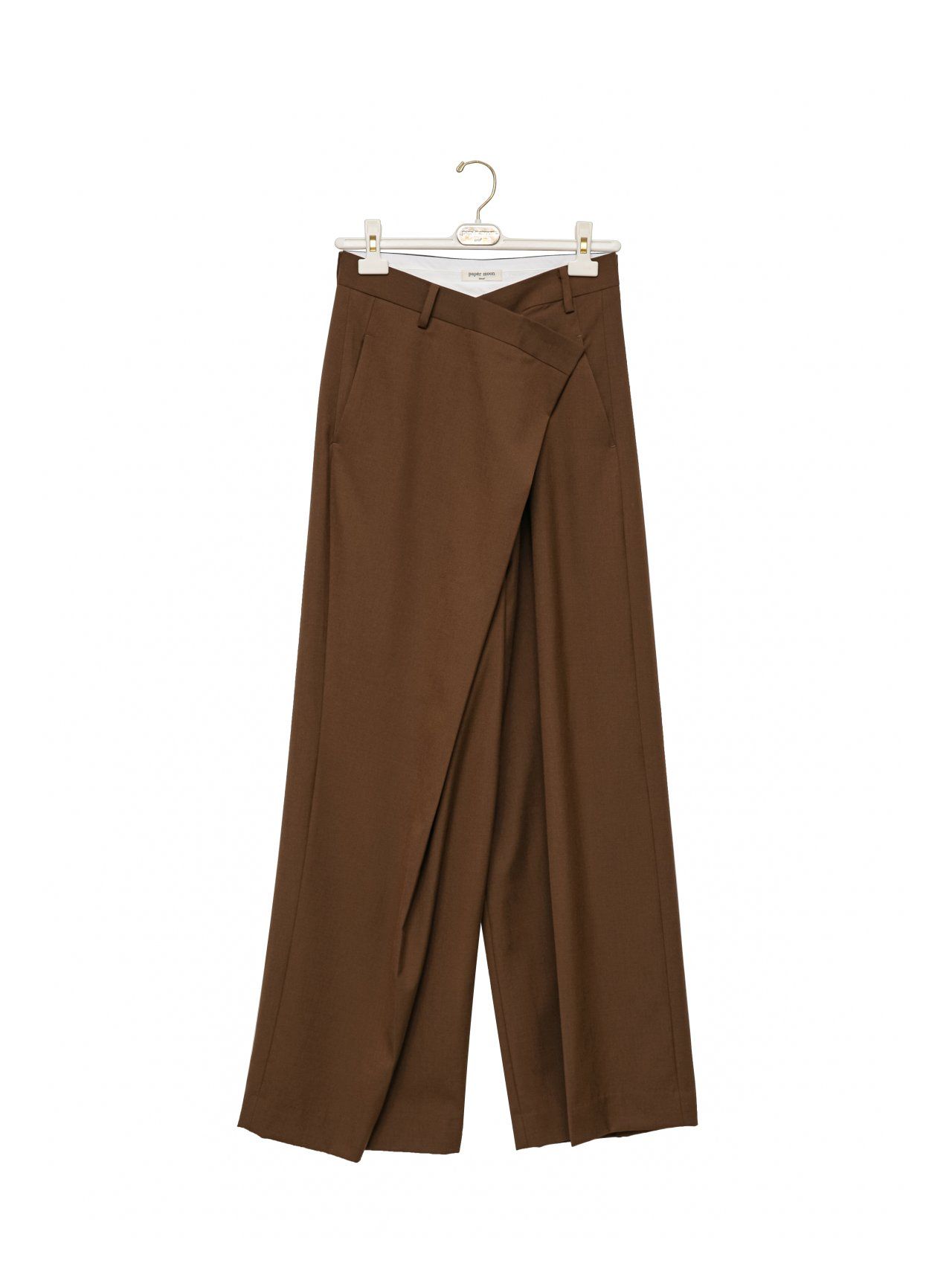 (PAPER MOON) ASYMMETRY PIN TUCK WIDE MAXI TROUSERS : BROWN