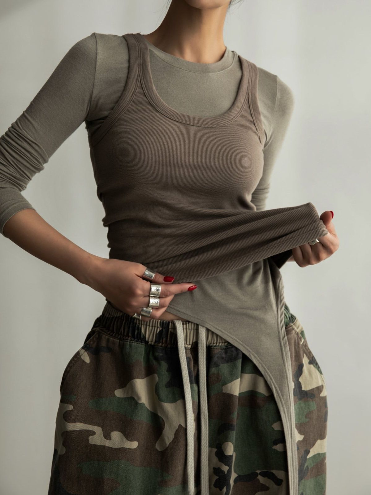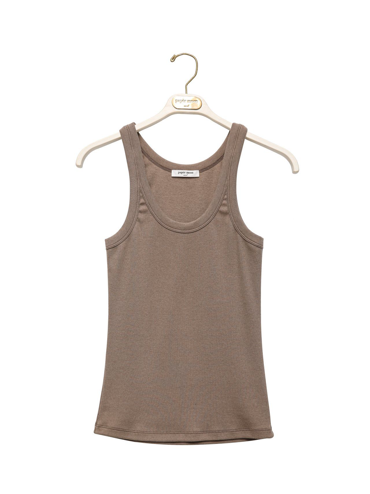 (PAPER MOON) SLEEVELESS RIB JERSEY TANK TOP : BEIGE BROWN