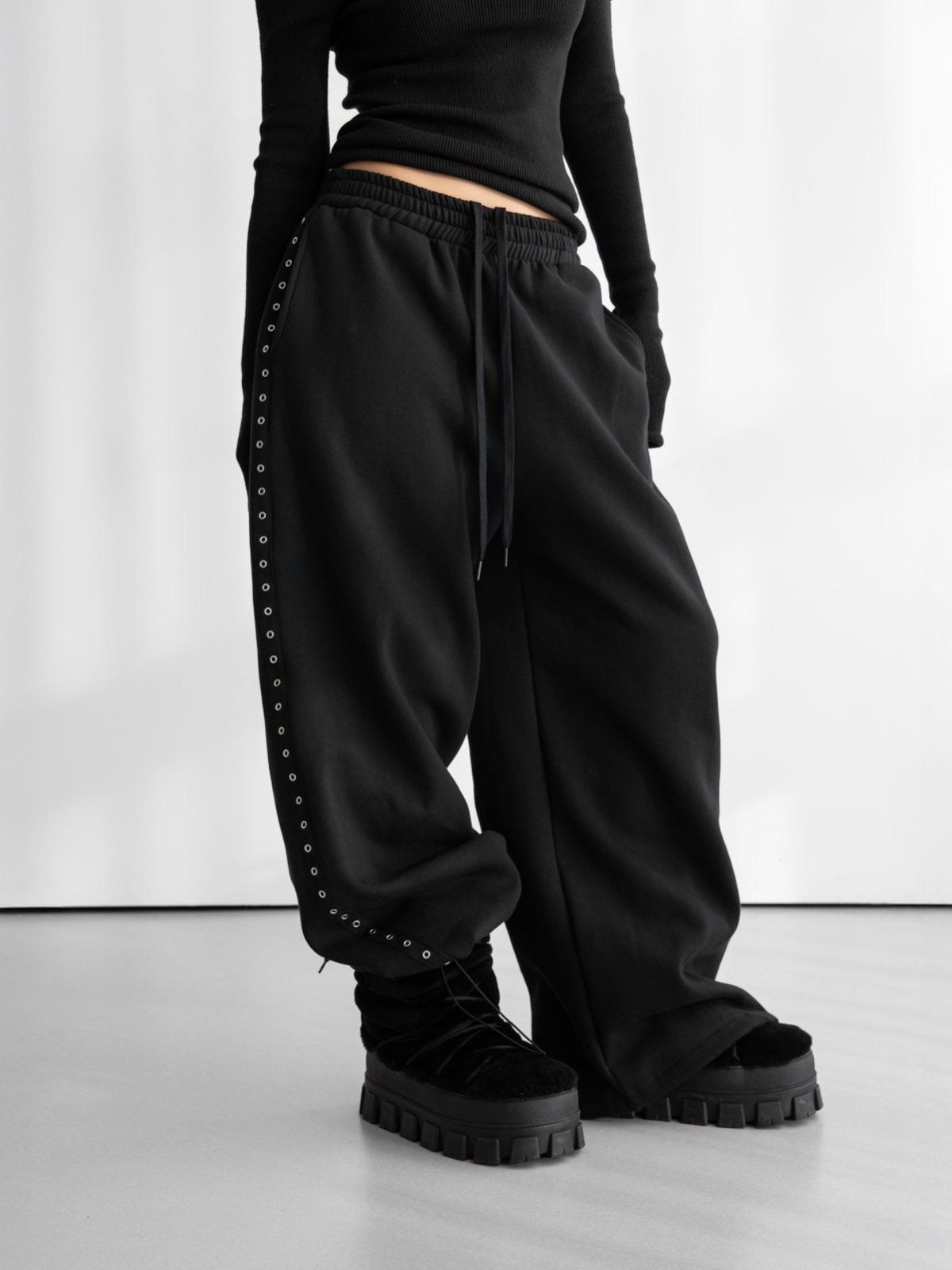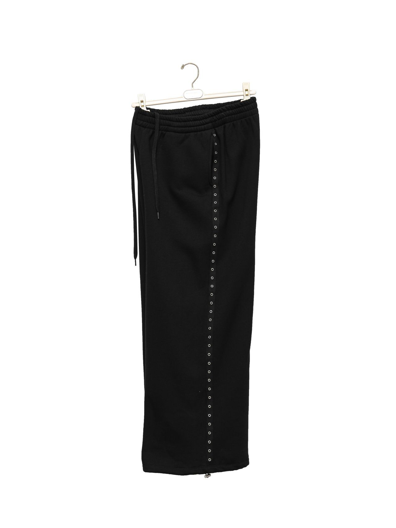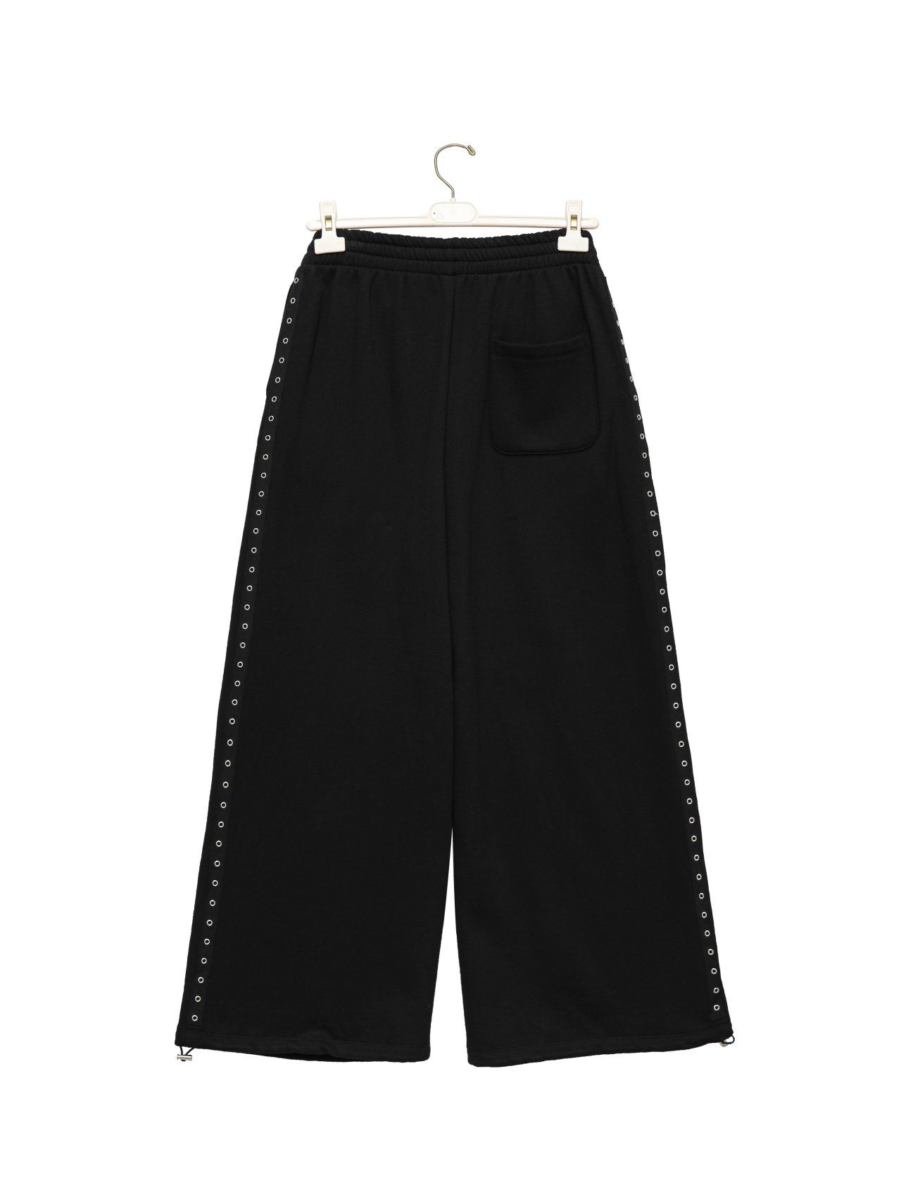 (PAPER MOON) OVERSIZED EYELET LINE DETAIL SWEAT WIDE TROUSERS : BLACK