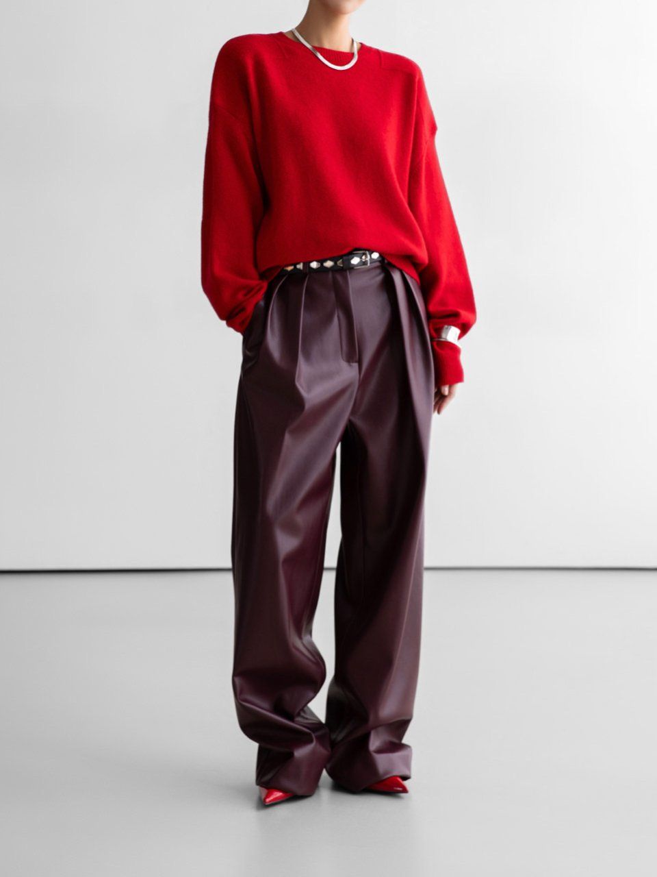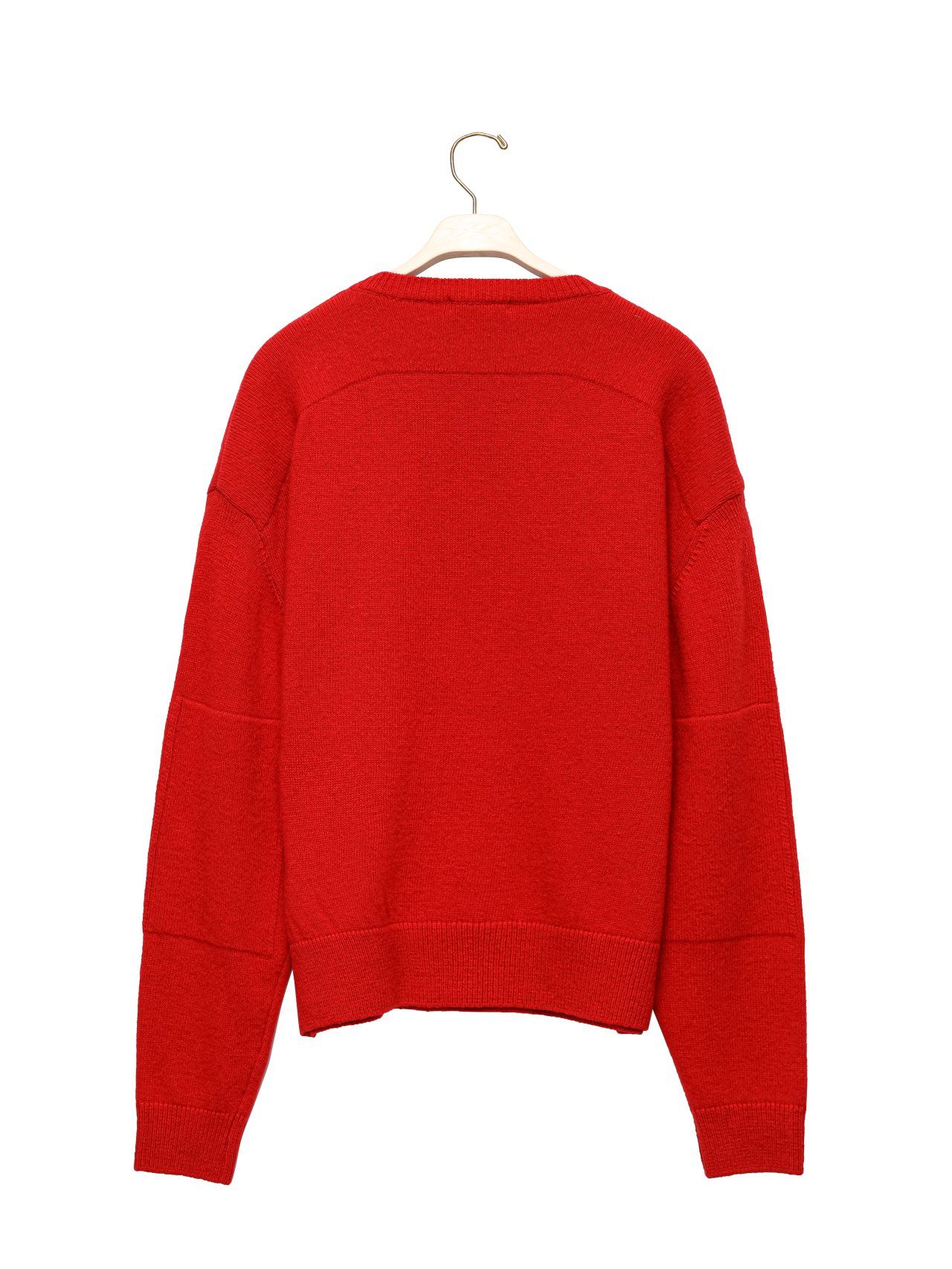 (PAPER MOON) DOUBLE KNITTING SHOULDER DETAIL ROUND NECK KNIT : RED