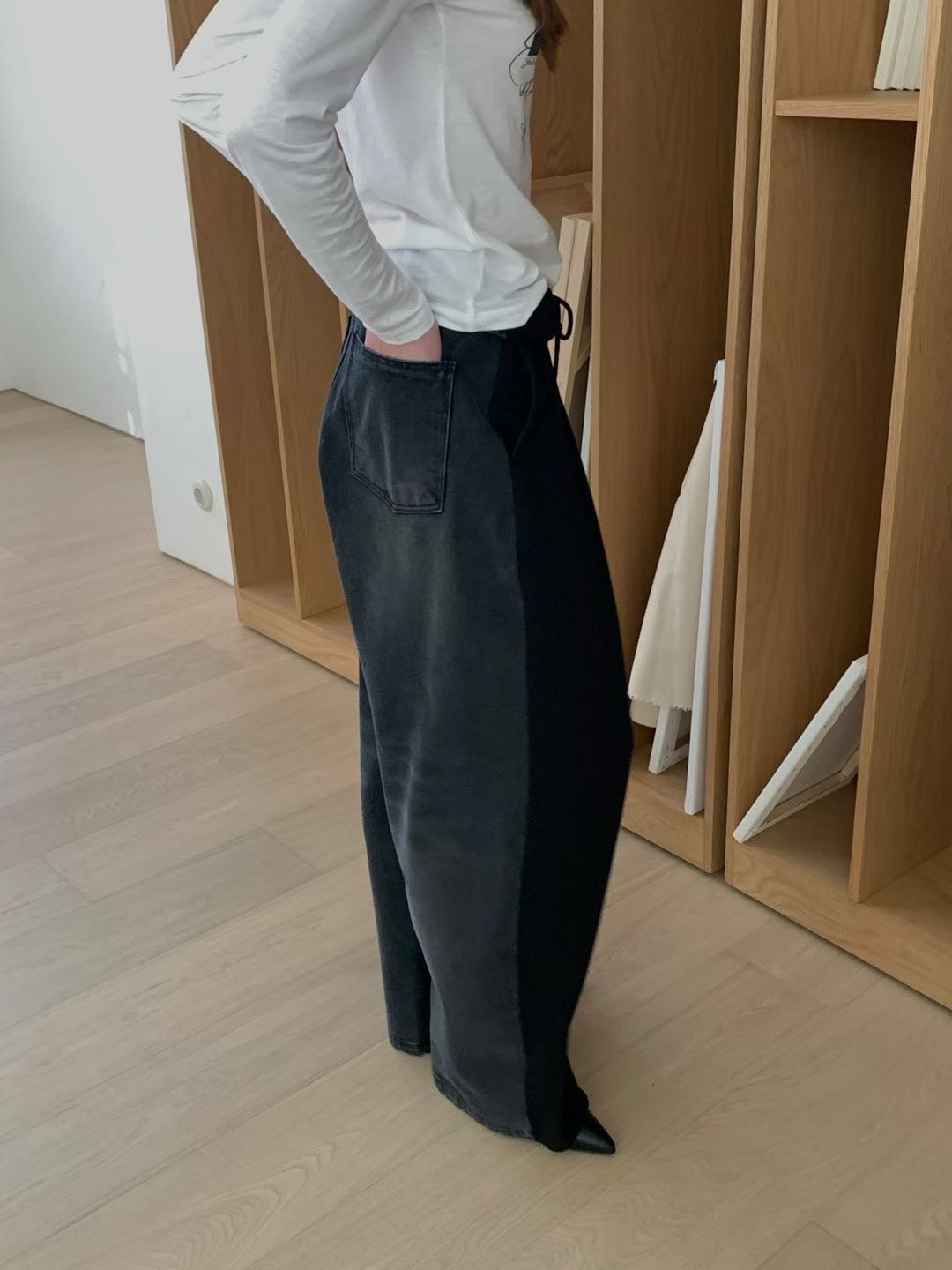 (REPELLER) TWO TONE PANEL PANTS : CHARCOAL