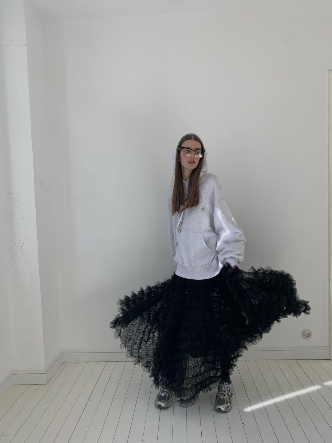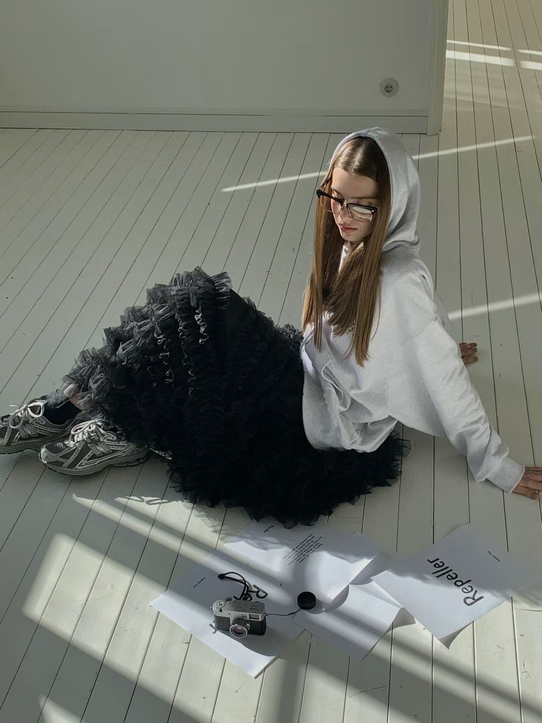 (REPELLER) RUFFLED SKIRT : BLACK