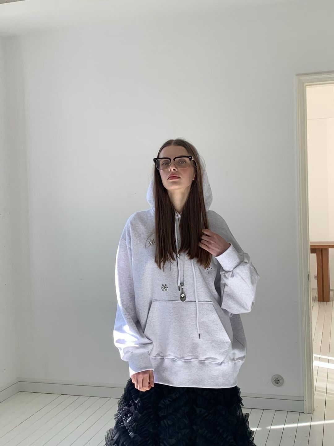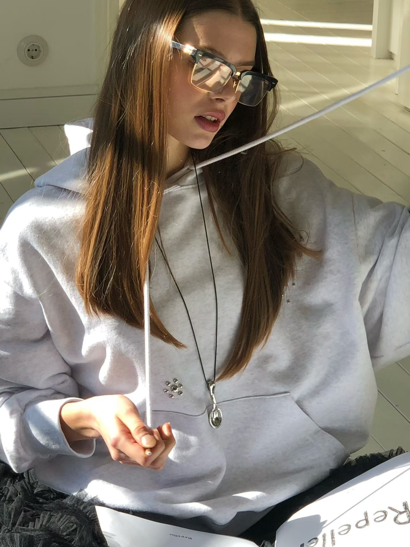 (REPELLER) METAL CHARM HOODIE : GREY