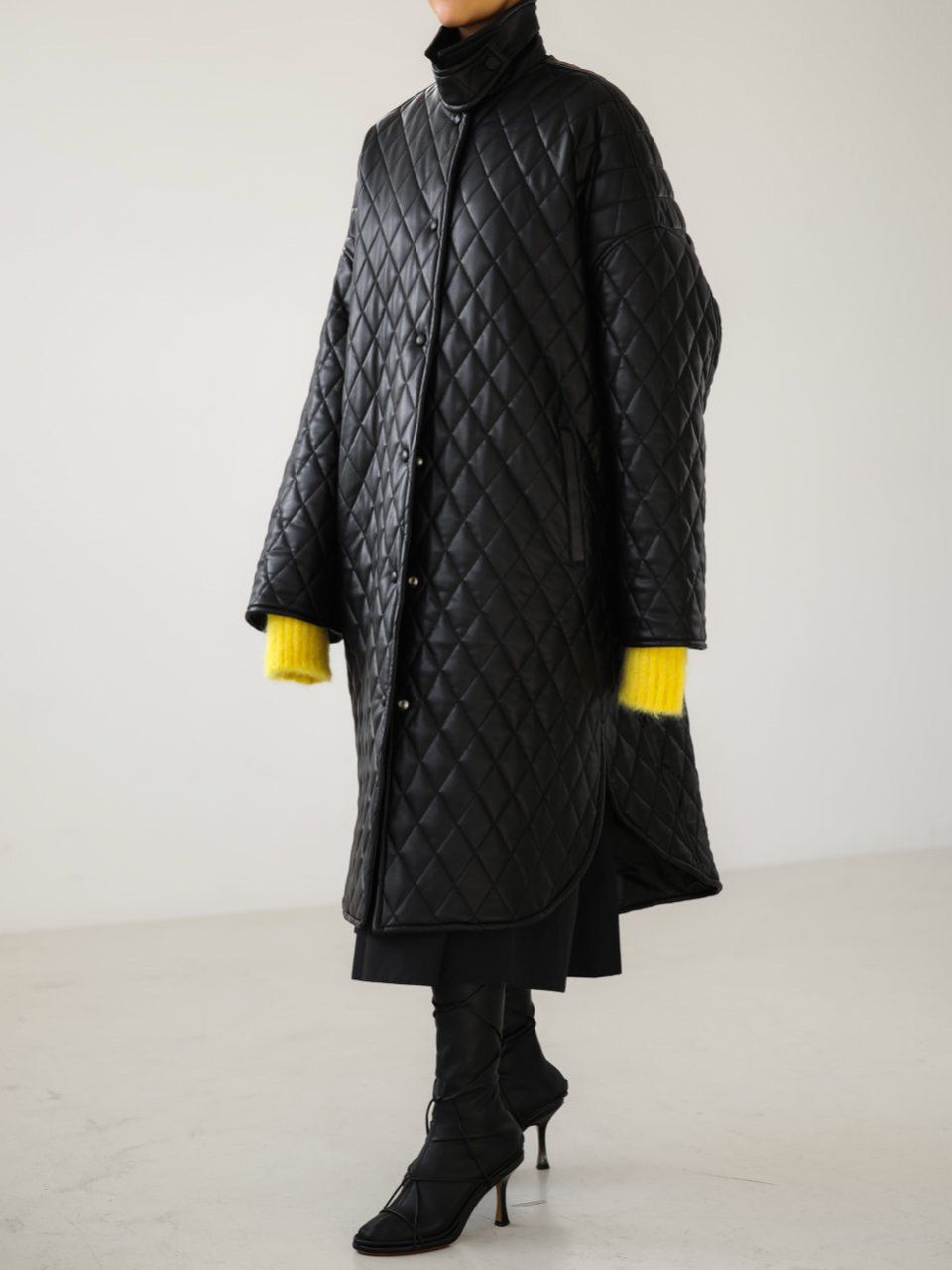 (PAPER MOON) VEGAN LEATHER QUILTED PADDED SNAP BUTTON COAT : BLACK