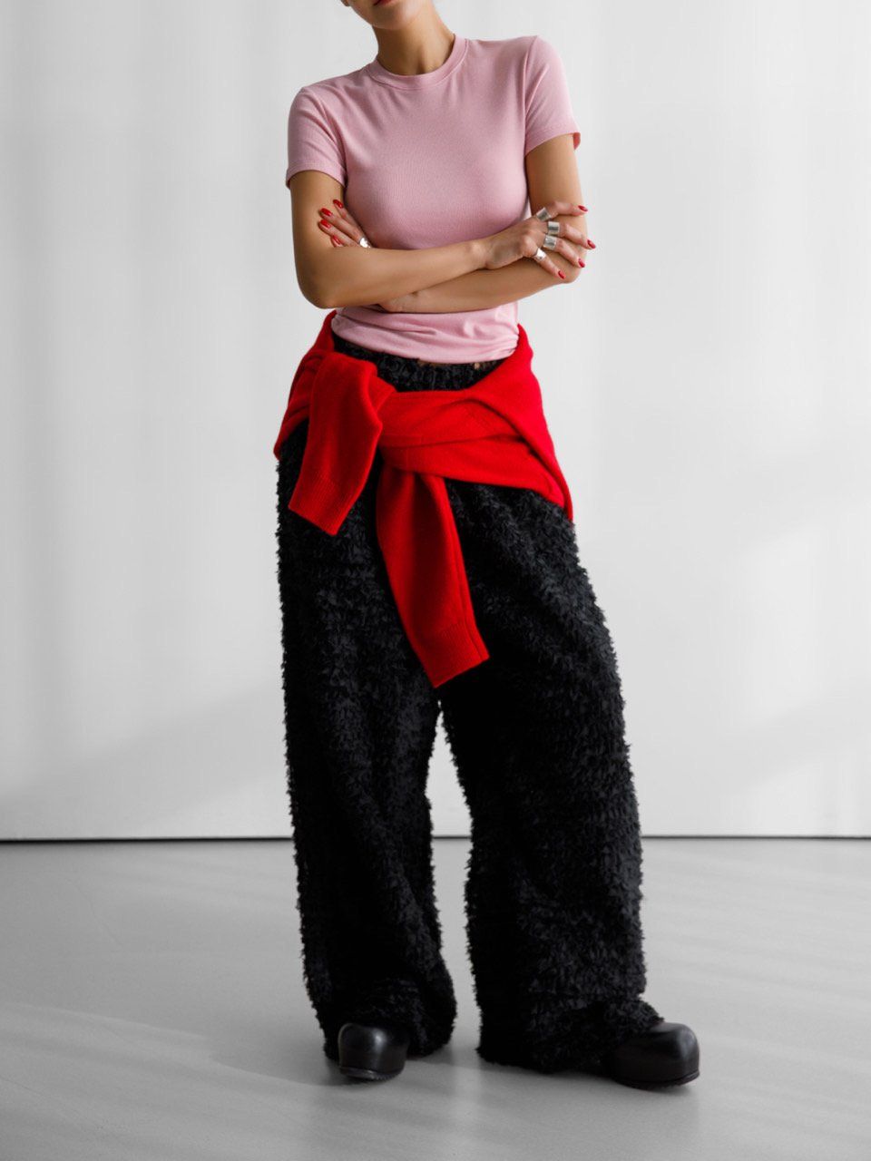 (PAPER MOON) LUX FEATHER LACE DETAIL WIDE TROUSERS : BLACK
