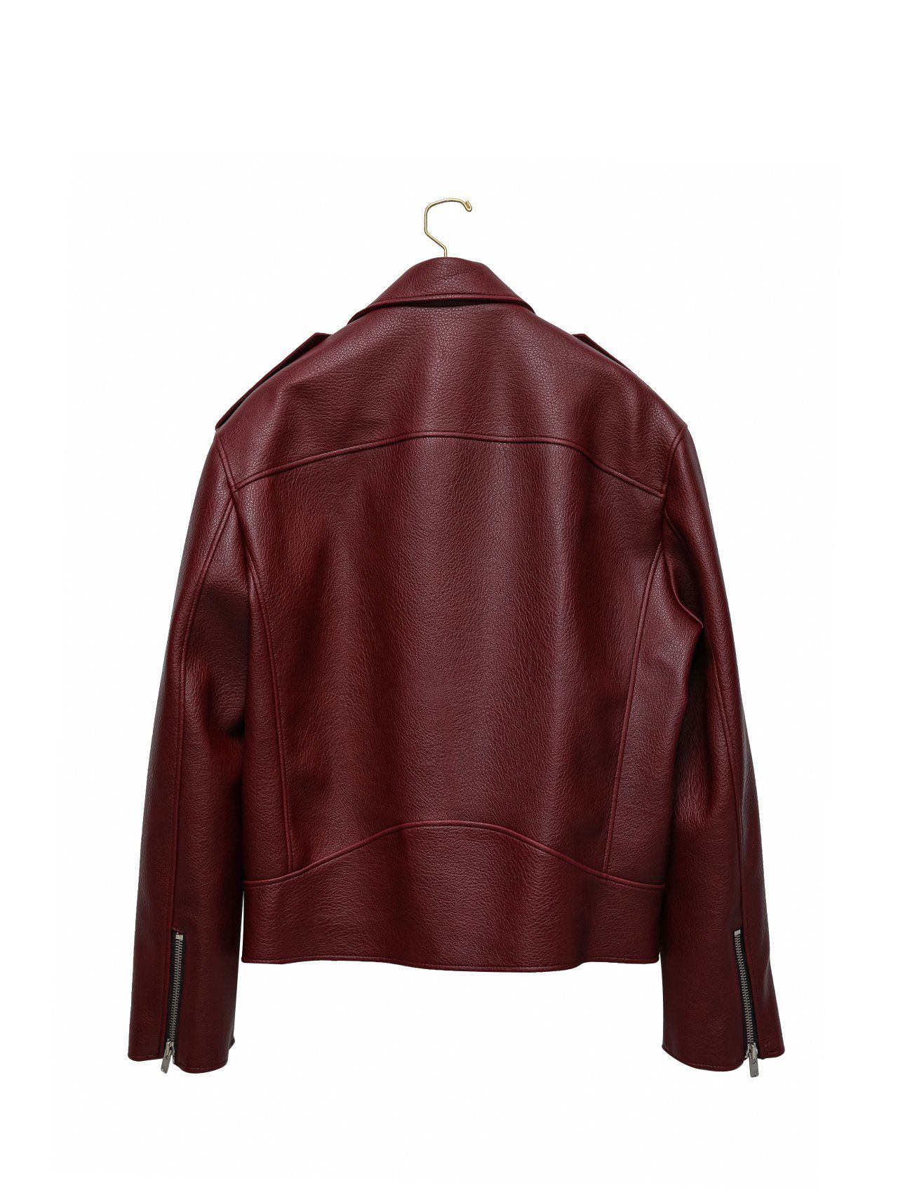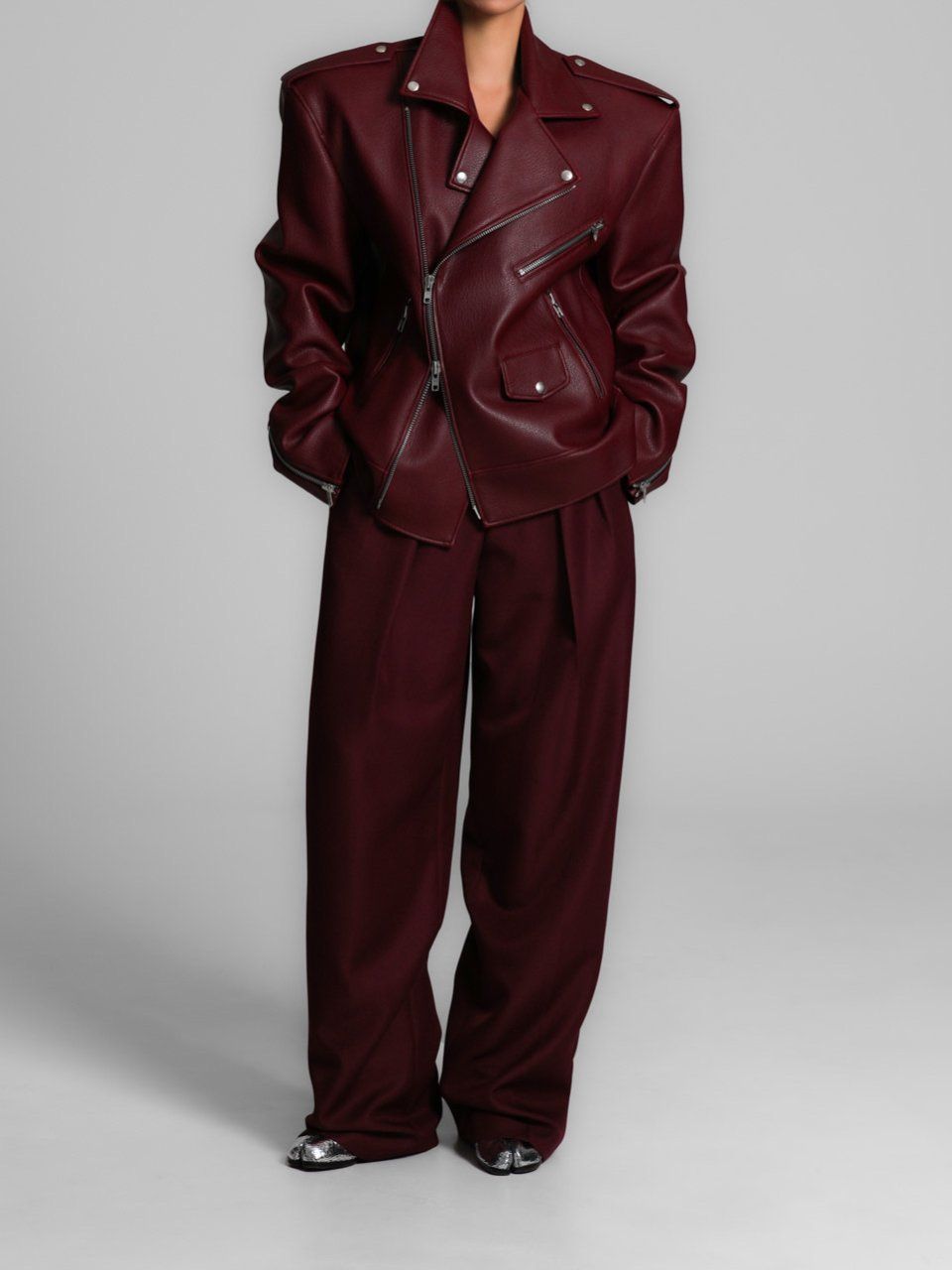 (PAPER MOON) OVERSIZED CHUNKY ZIPPED VEGAN LEATHER BIKER JACKET : BURGUNDY