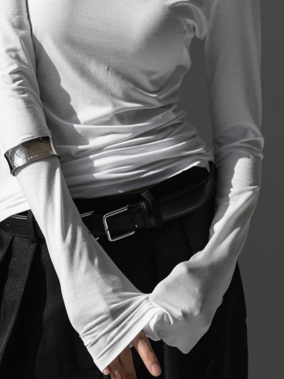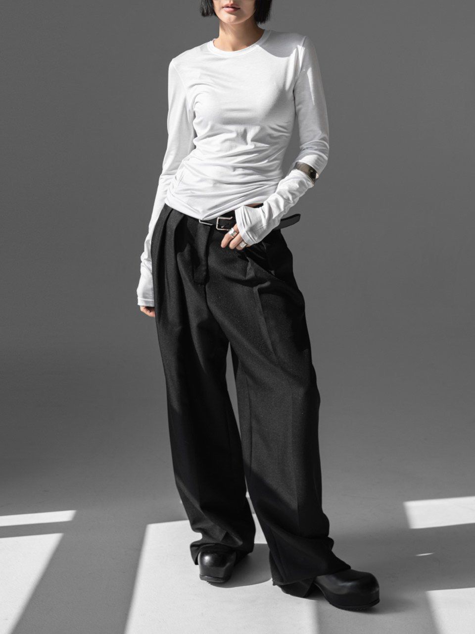 (PAPER MOON) CLASSIC SLIM FIT TENCEL CREW NECK TOP : WHITE