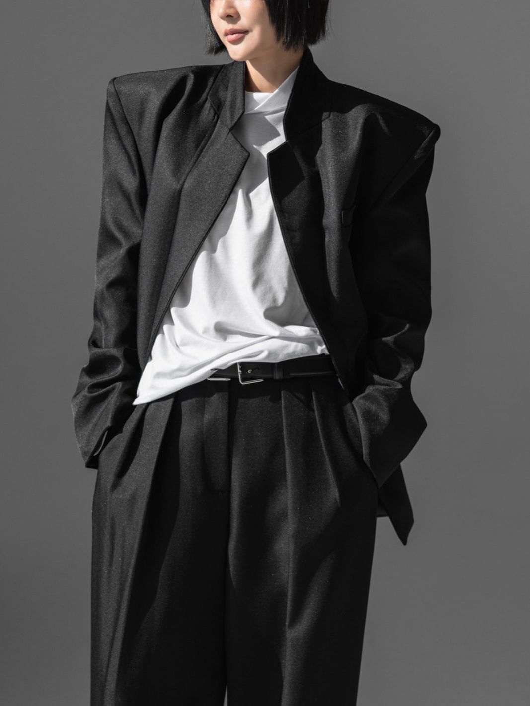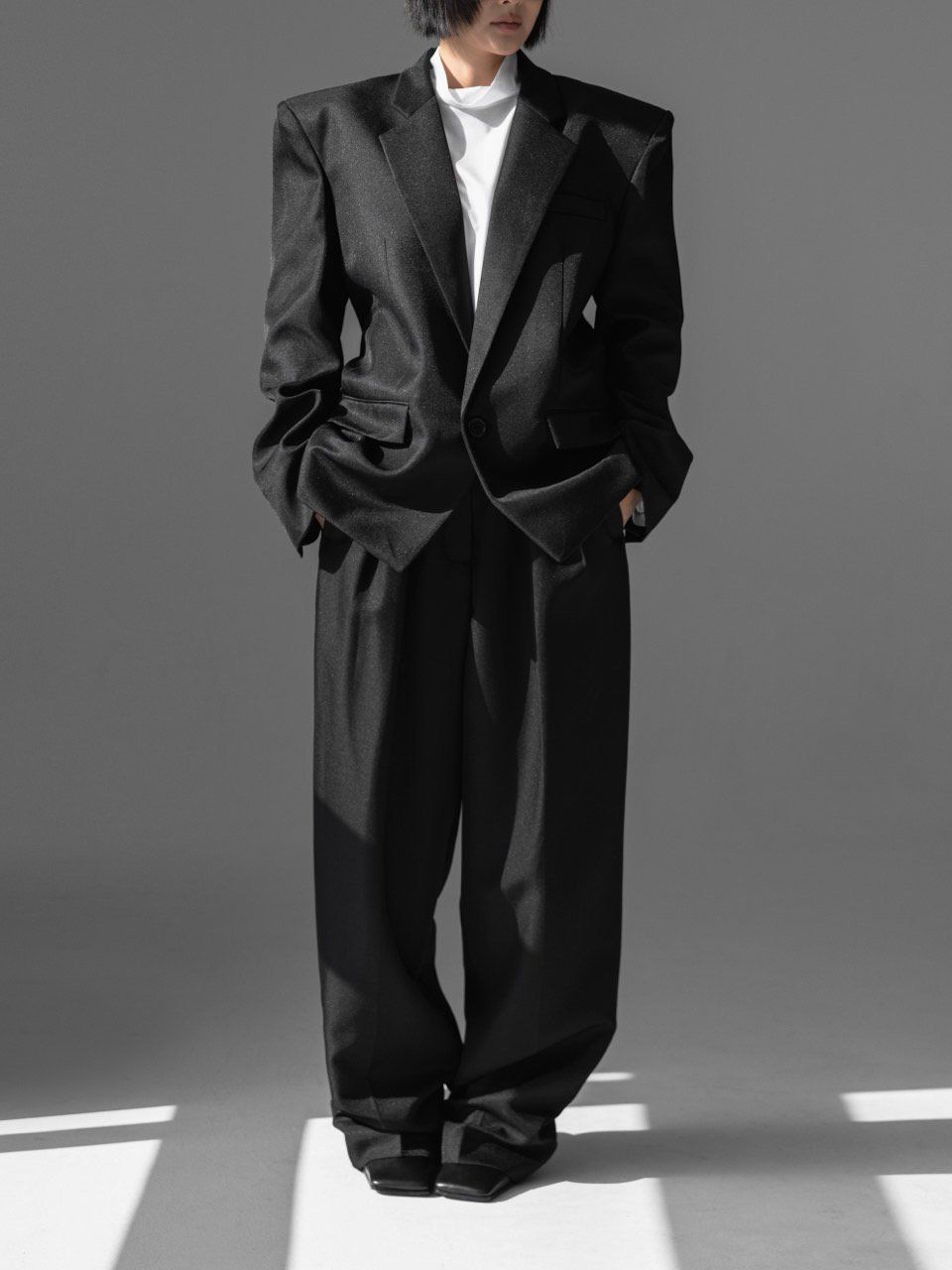(PAPER MOON) SQUARE SHOULDER OVERSIZED TWILL BLAZER : BLACK