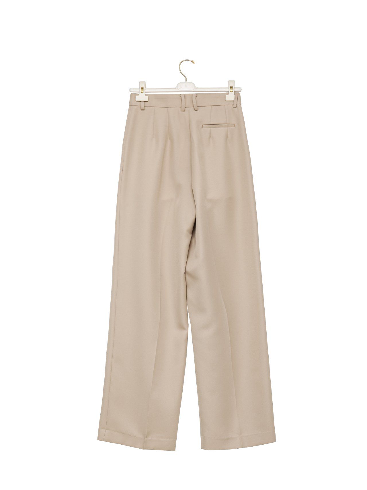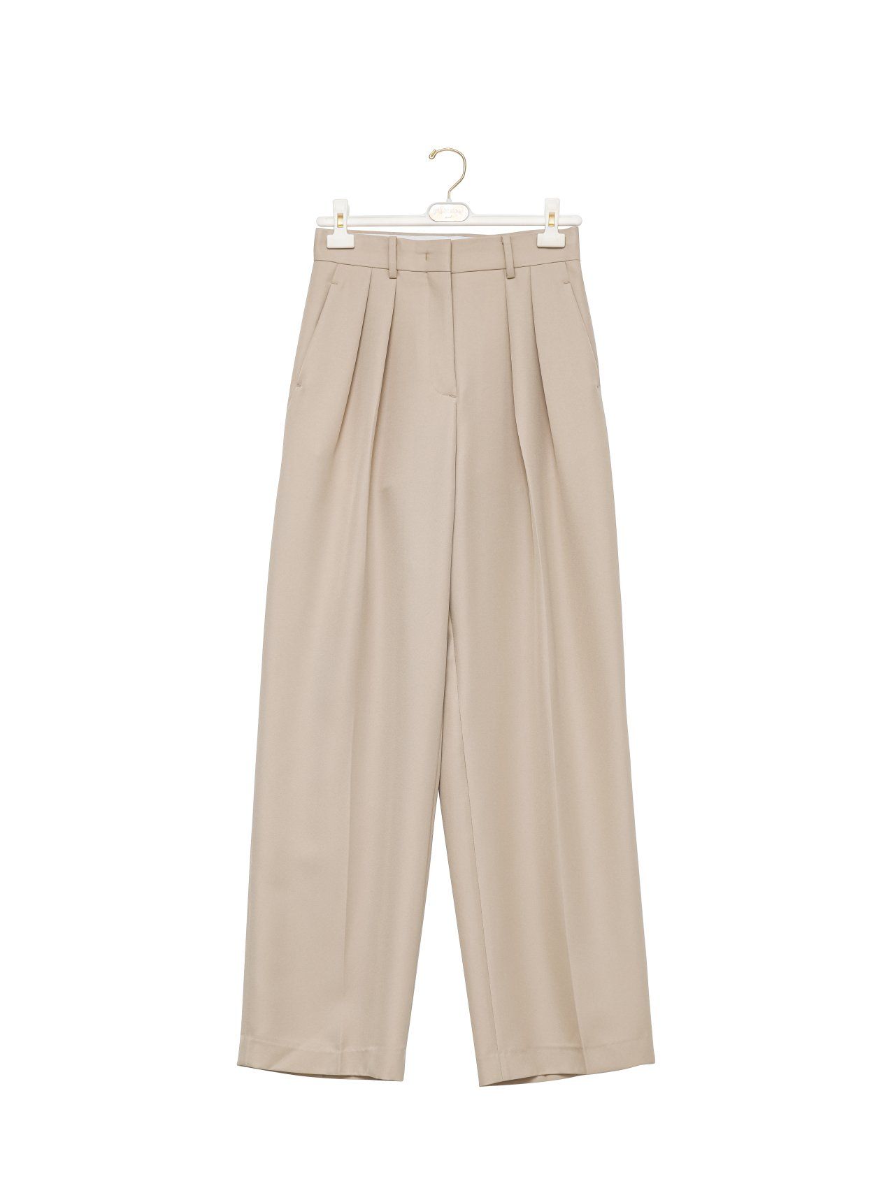 (PAPER MOON) TWILL TEXTURE LOW WAISTED DOUBLE PLEATS WIDE TROUSERS : BEIGE