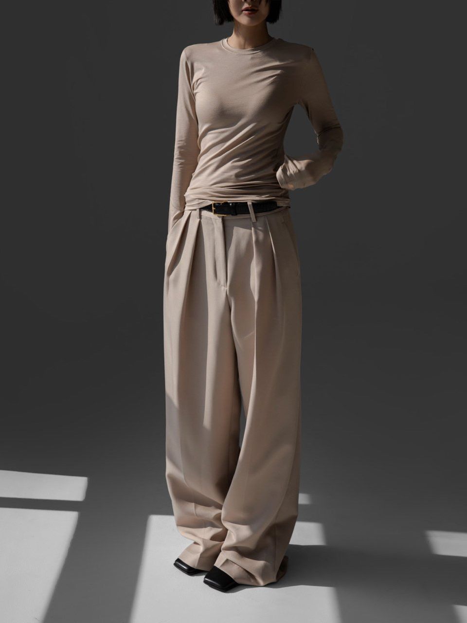 (PAPER MOON) CLASSIC SLIM FIT TENCEL CREW NECK TOP : BEIGE