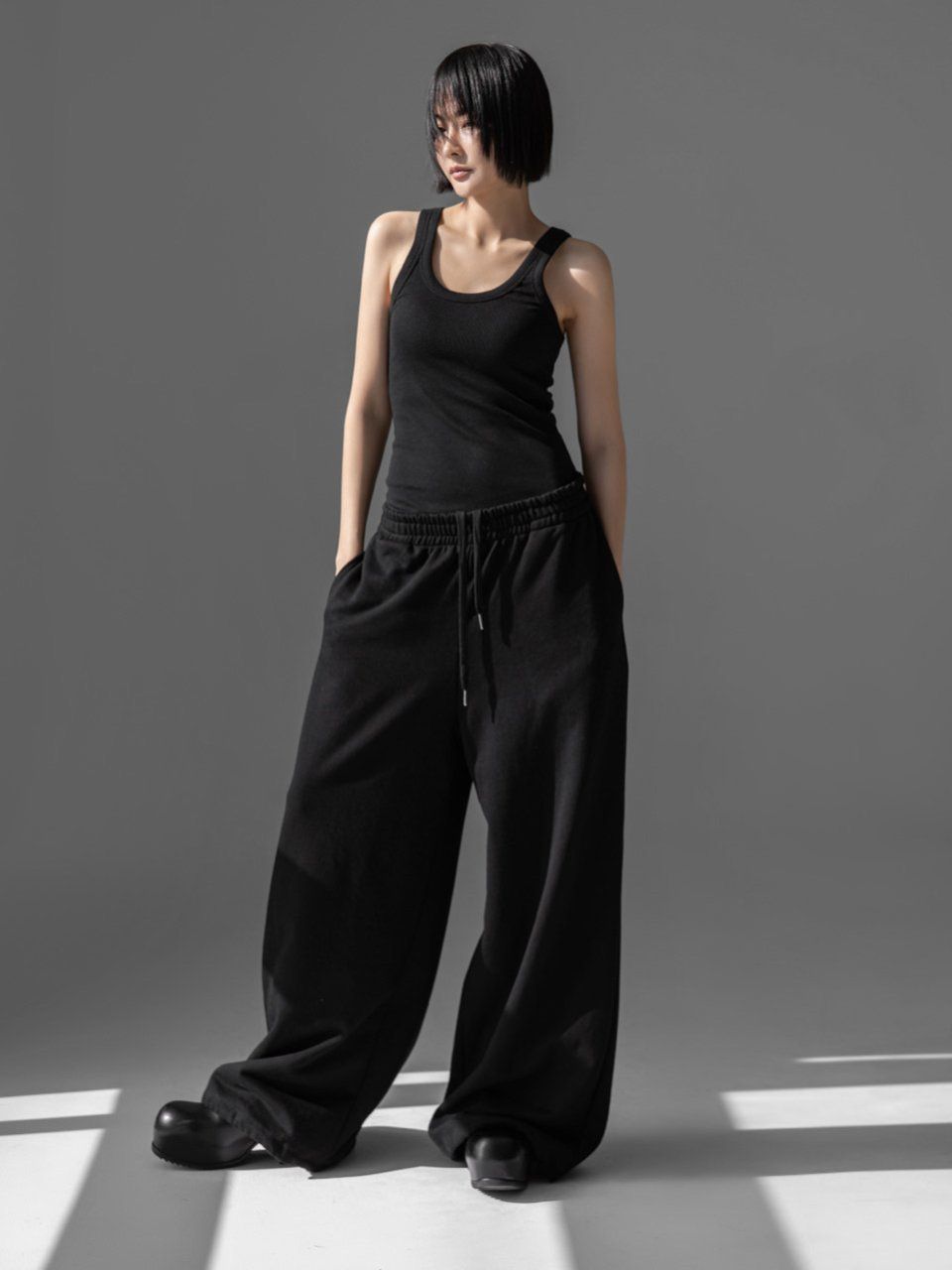 (PAPER MOON) CLASSIC OVERSIZED FIT TWO WAY SWEAT PANTS : BLACK