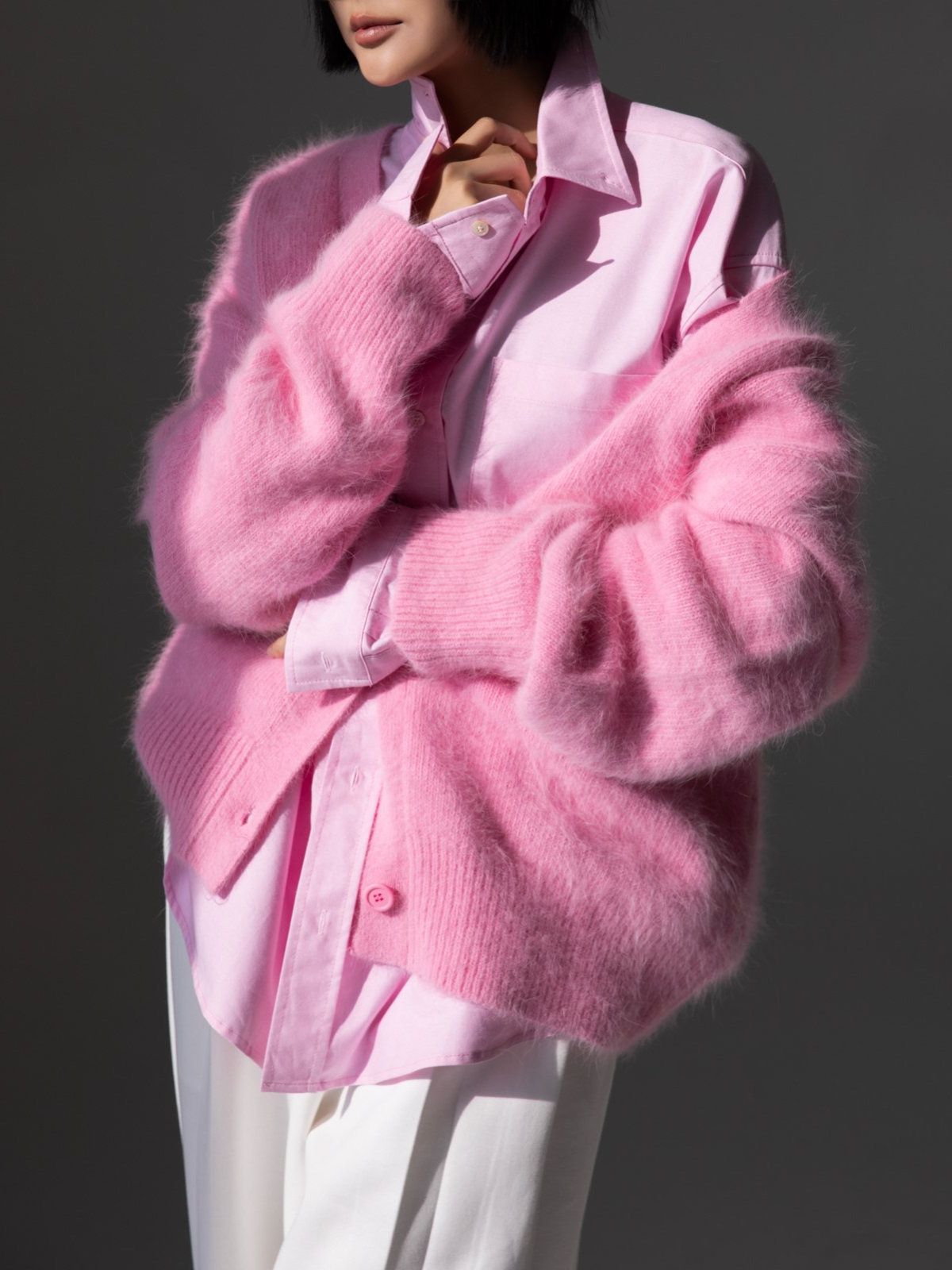 (PAPER MOON) LUX MINK ANGORA OVERSIZED KNIT CARDIGAN : PINK