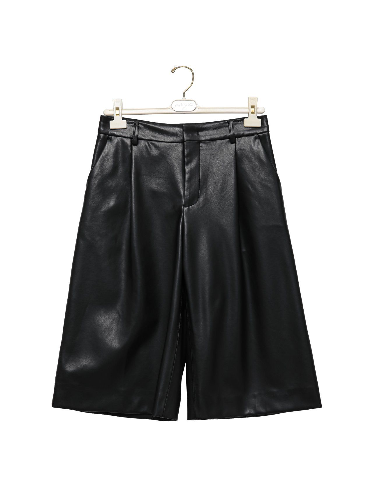 (PAPER MOON) CLASSIC WIDE FIT SHINY LEATHER BERMUDA TROUSERS : BLACK