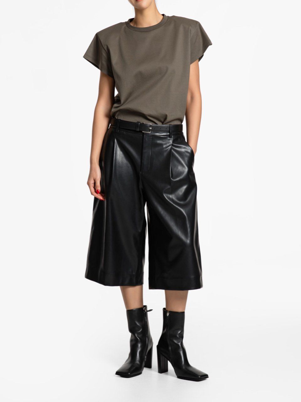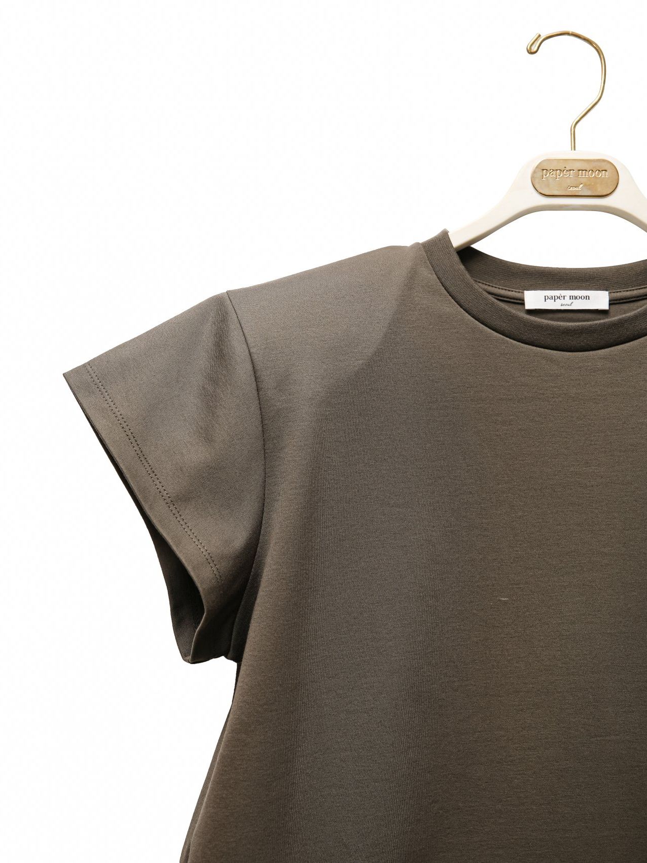 (PAPER MOON) PADDED SHOULDER WING SLEEVES TEE : KHAKI