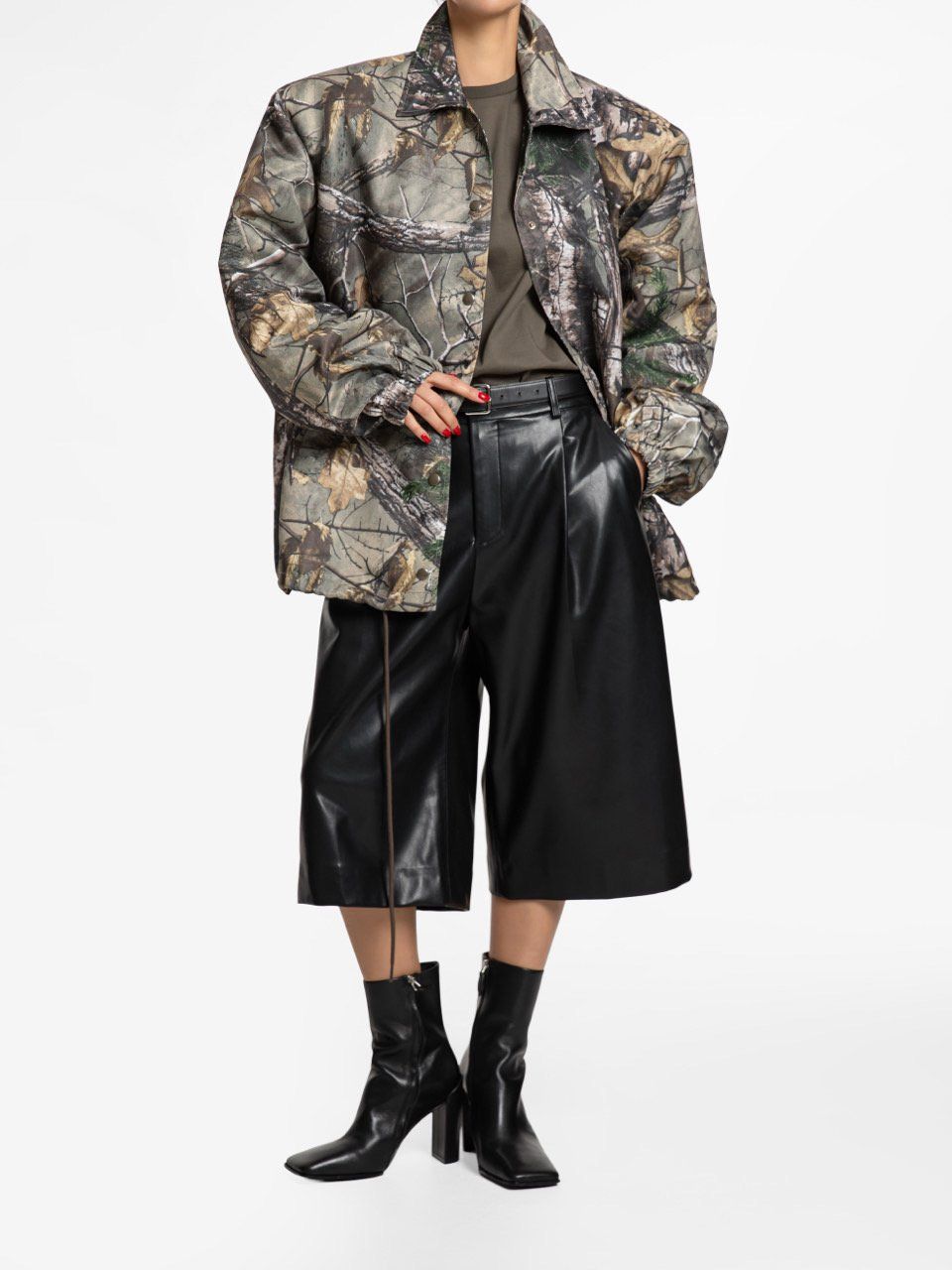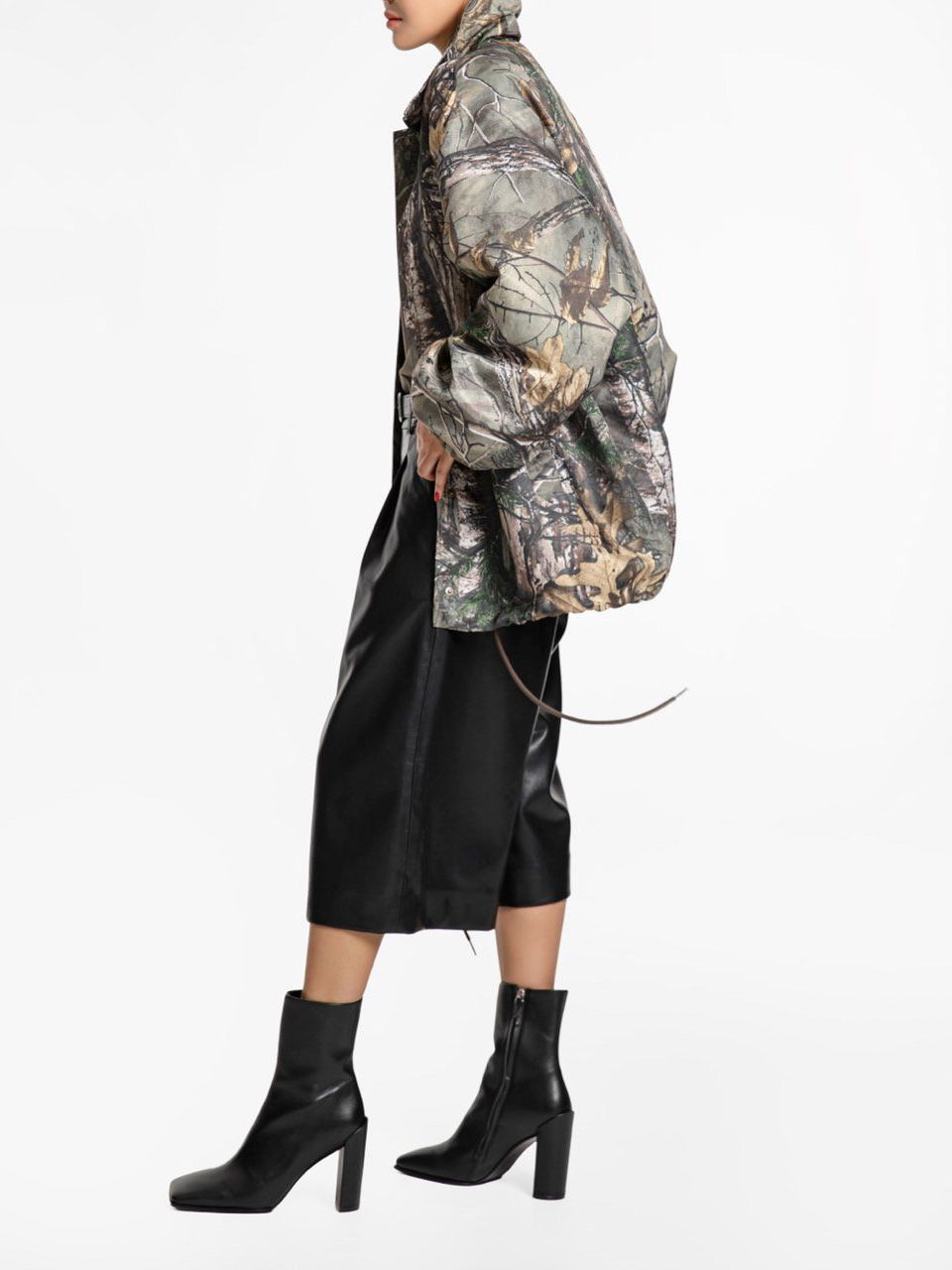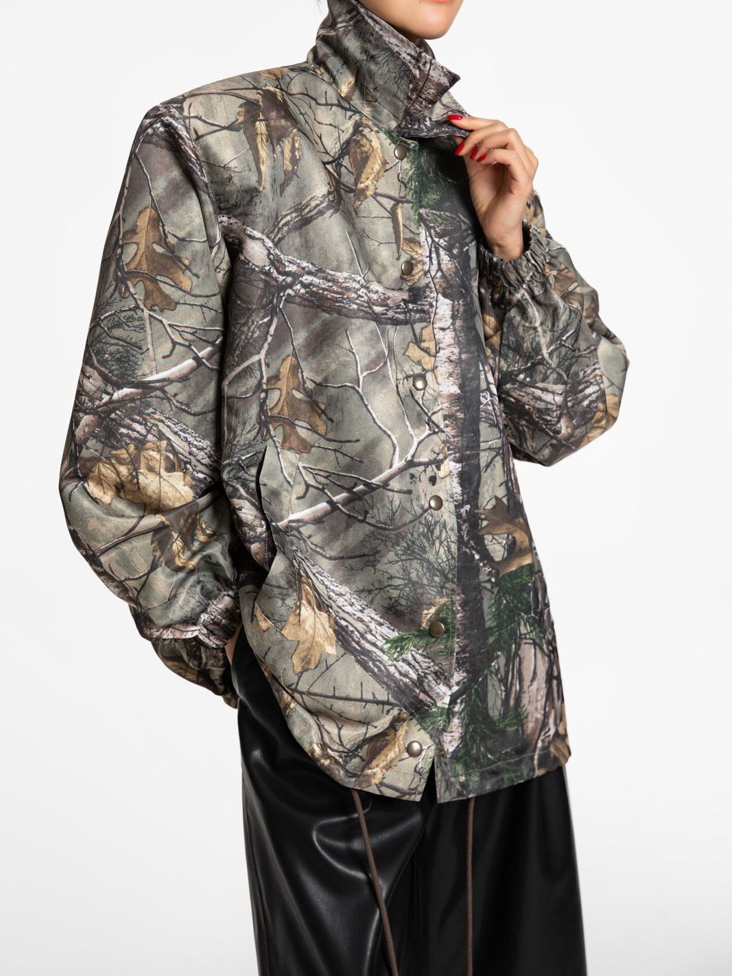 (PAPER MOON) OVERSIZED PADDED SHOULDER SNAP BUTTON JACKET : REAL TREE PATTERN