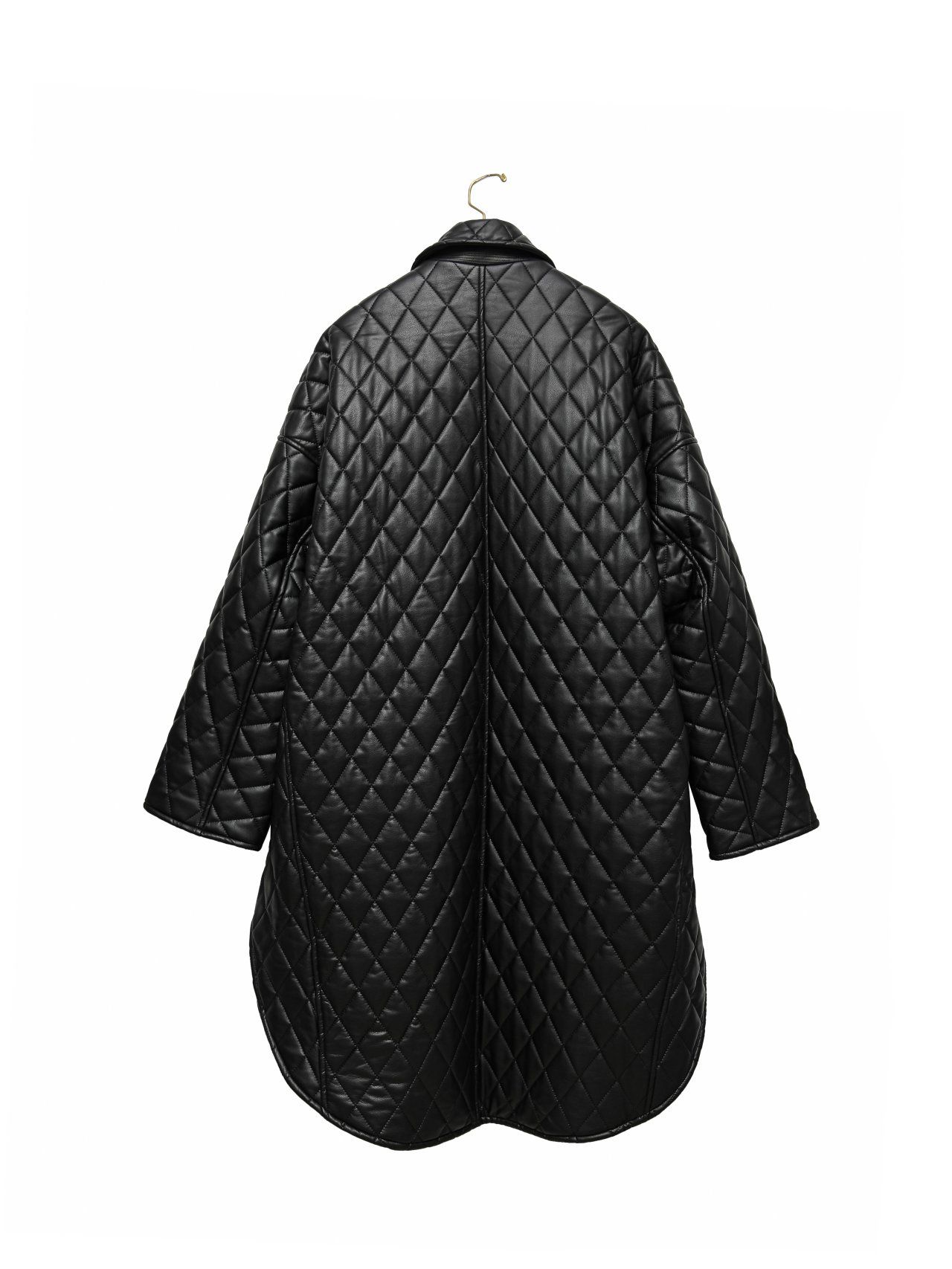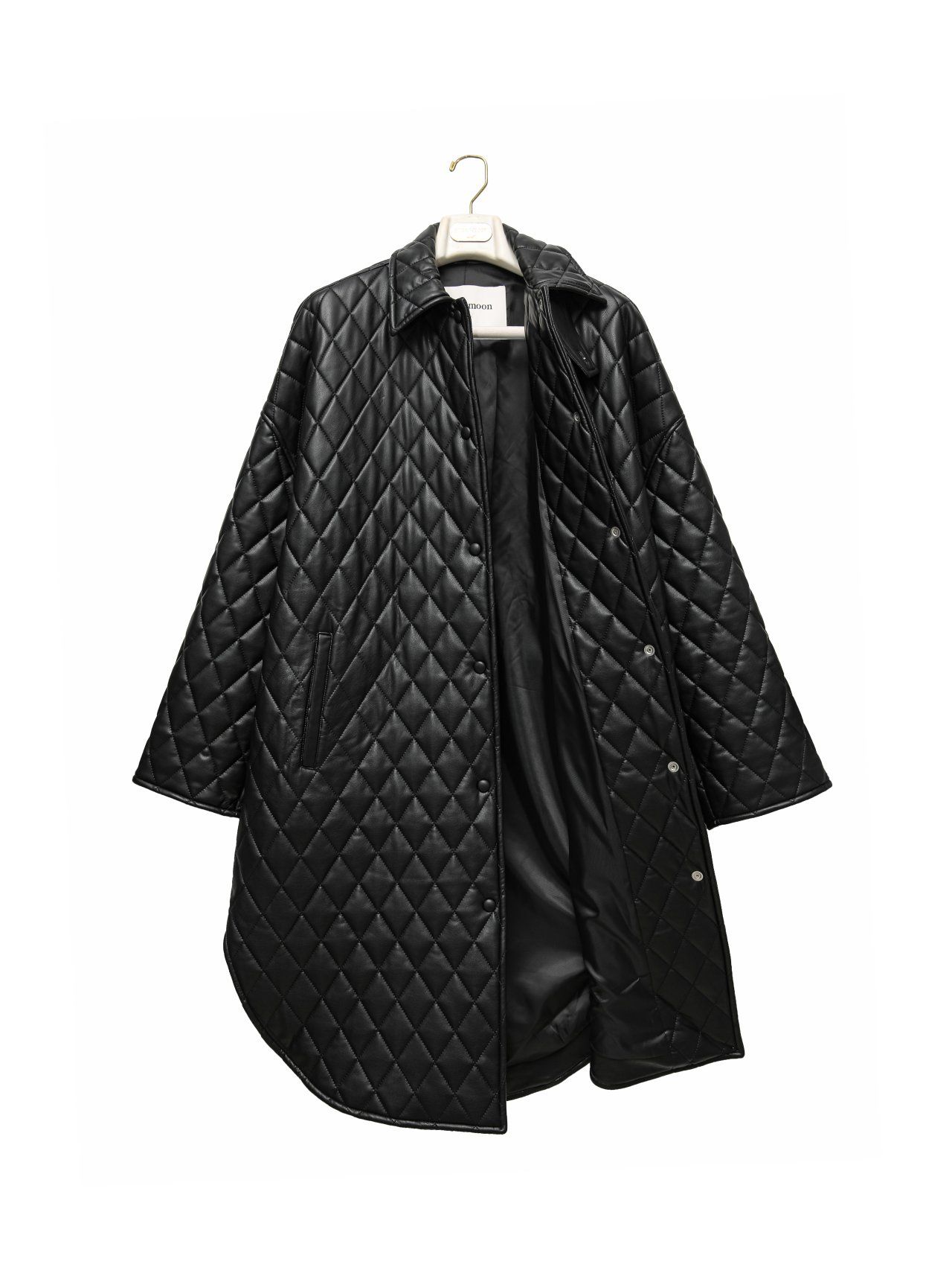 (PAPER MOON) VEGAN LEATHER QUILTED PADDED SNAP BUTTON COAT : BLACK