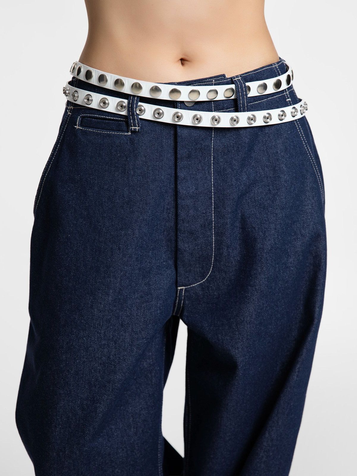 (PAPER MOON) LUX SNAP DETAIL TWO STRAP LEATHER BELT : WHITE