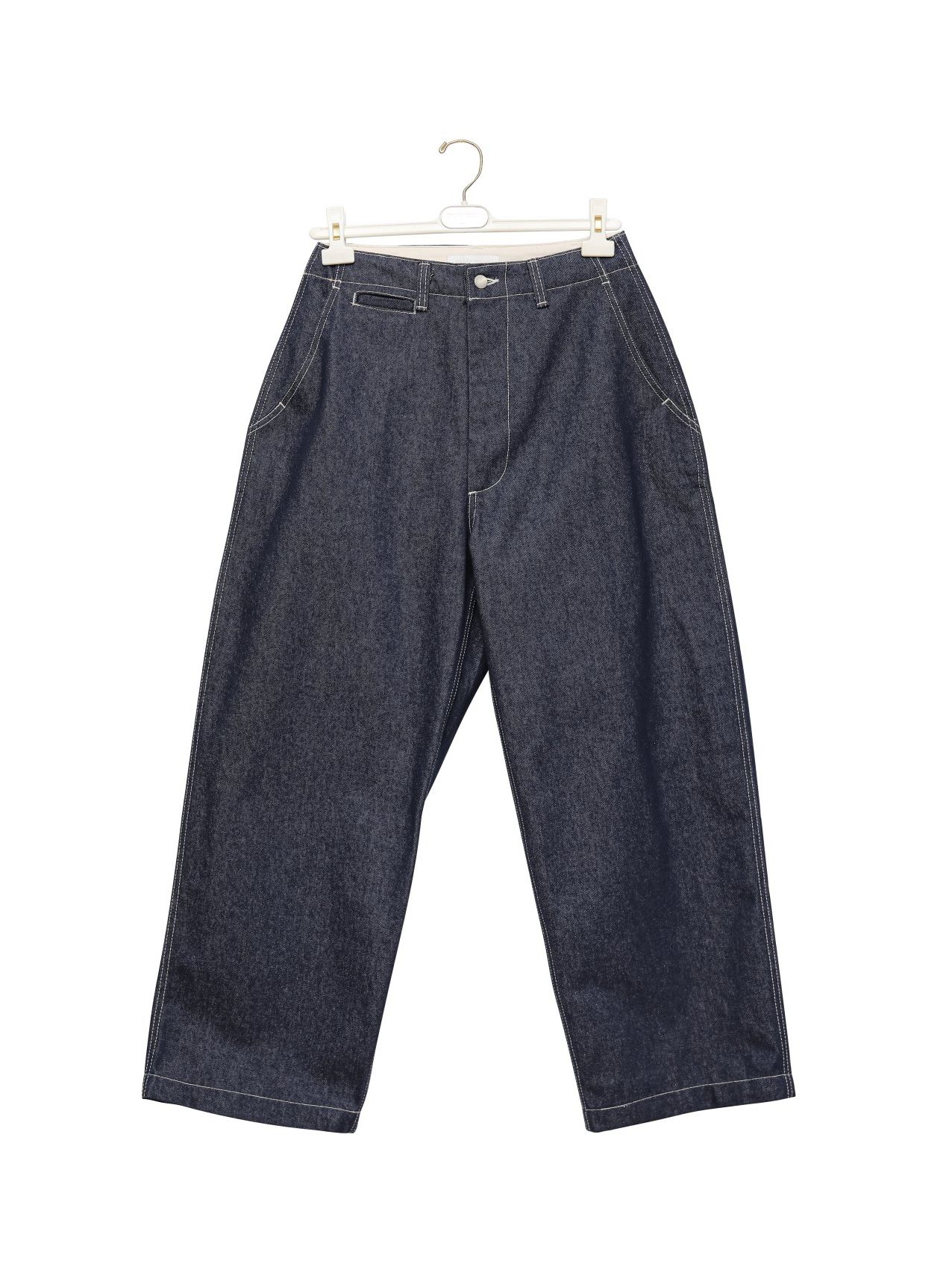 (PAPER MOON) STITCHED DETAIL WIDE BAGGY DENIM PANTS : DEEP BLUE