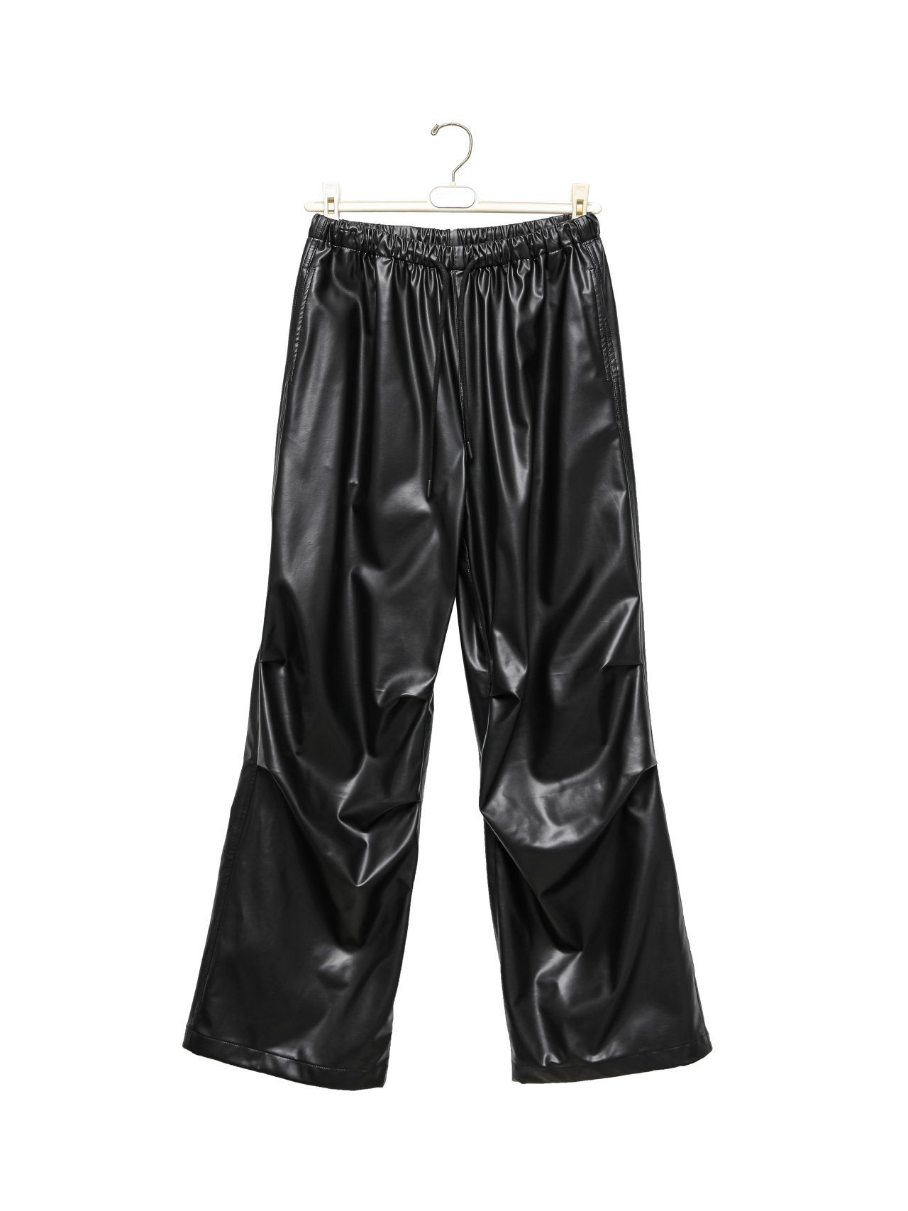 (PAPER MOON) GLOSSY LEATHER WIDE PARACHUTE PANTS : BLACK