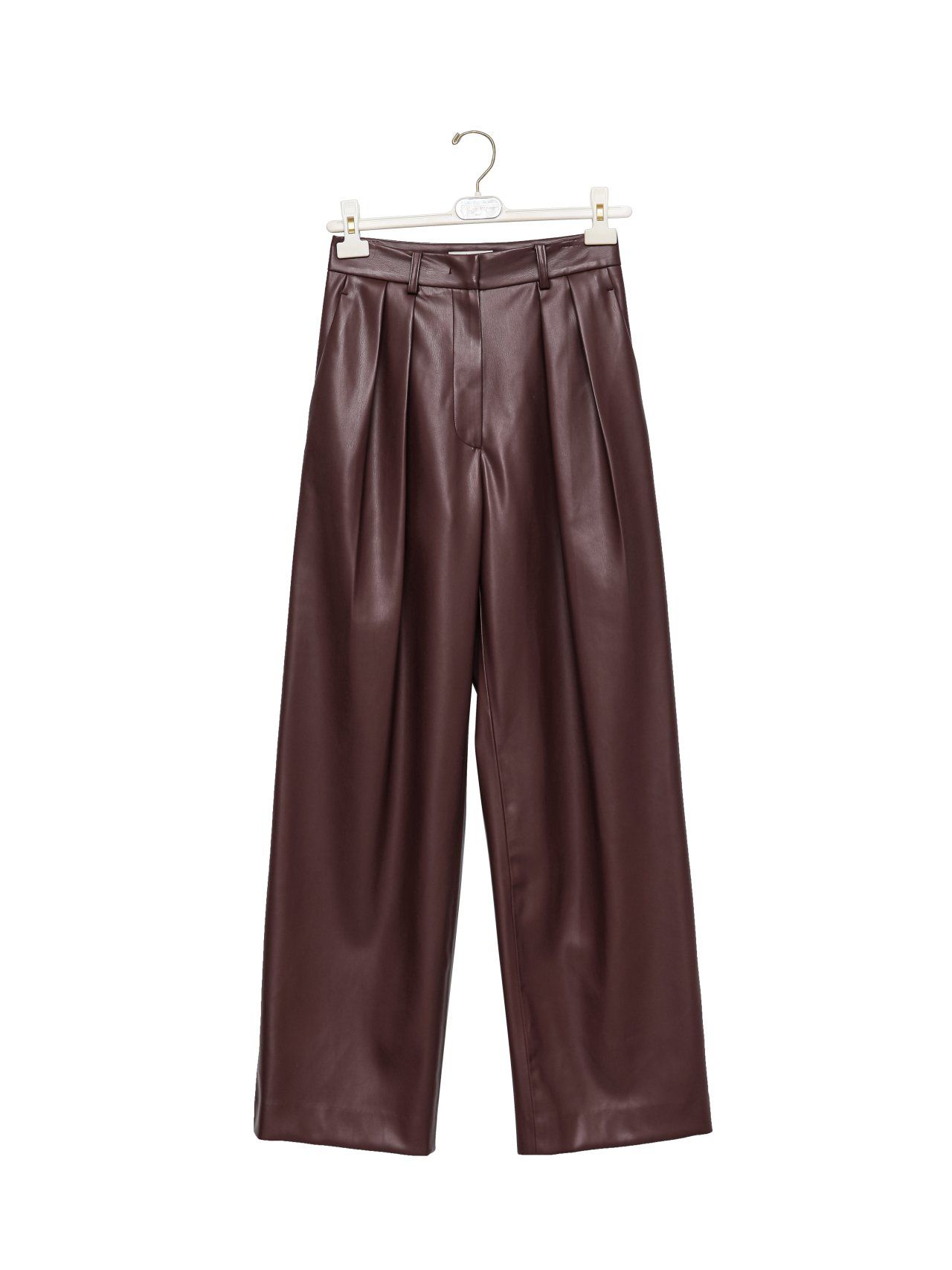 (PAPER MOON) LEATHER LOW WAISTED DOUBLE PLEATS WIDE TROUSERS : BURGUNDY