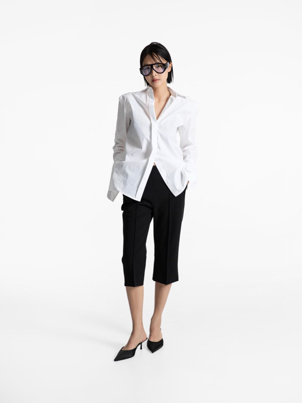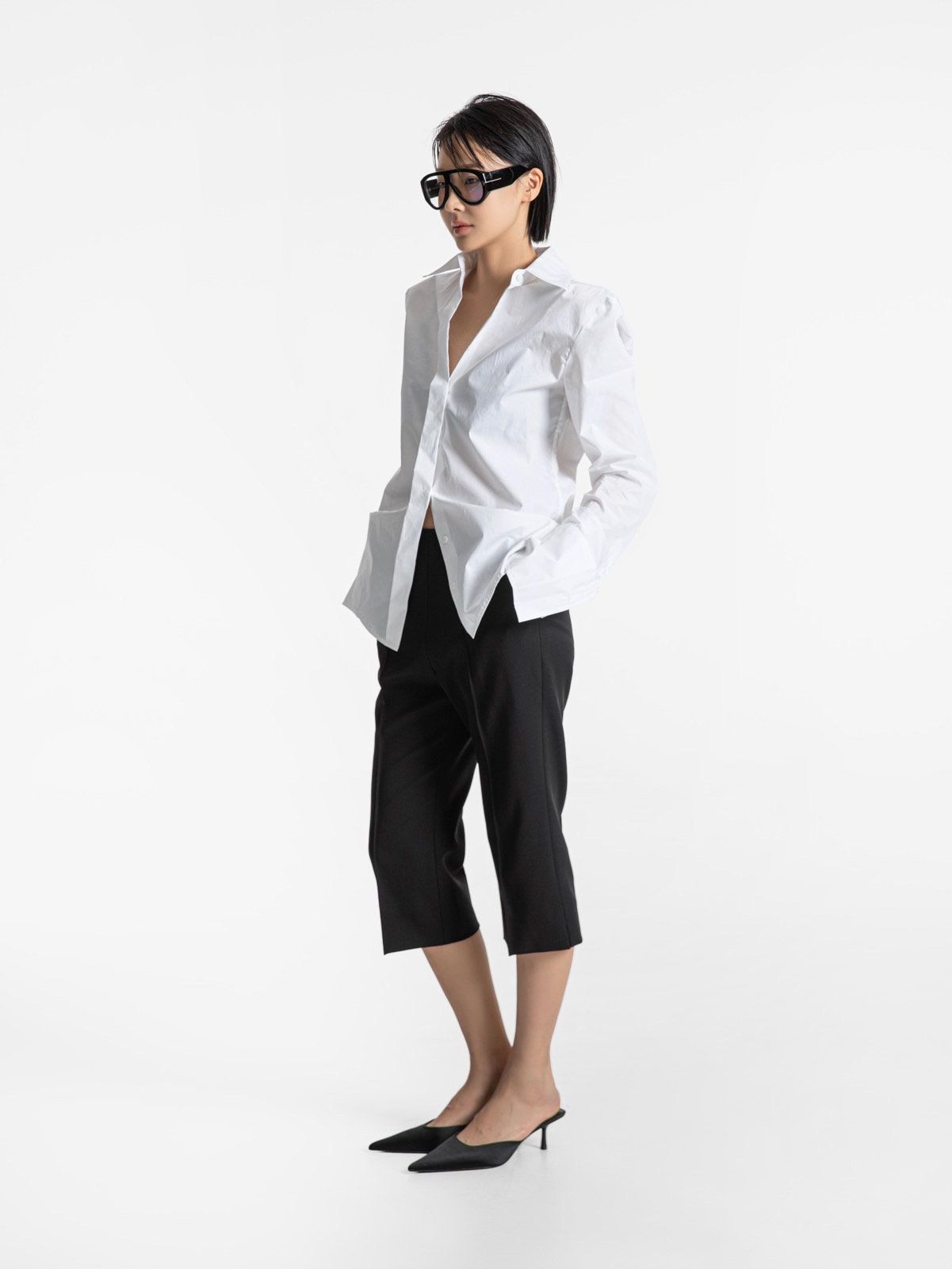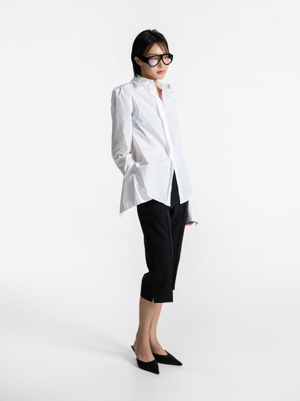(PAPER MOON) SLIM FIT LONG CUFF SHIRT : WHITE