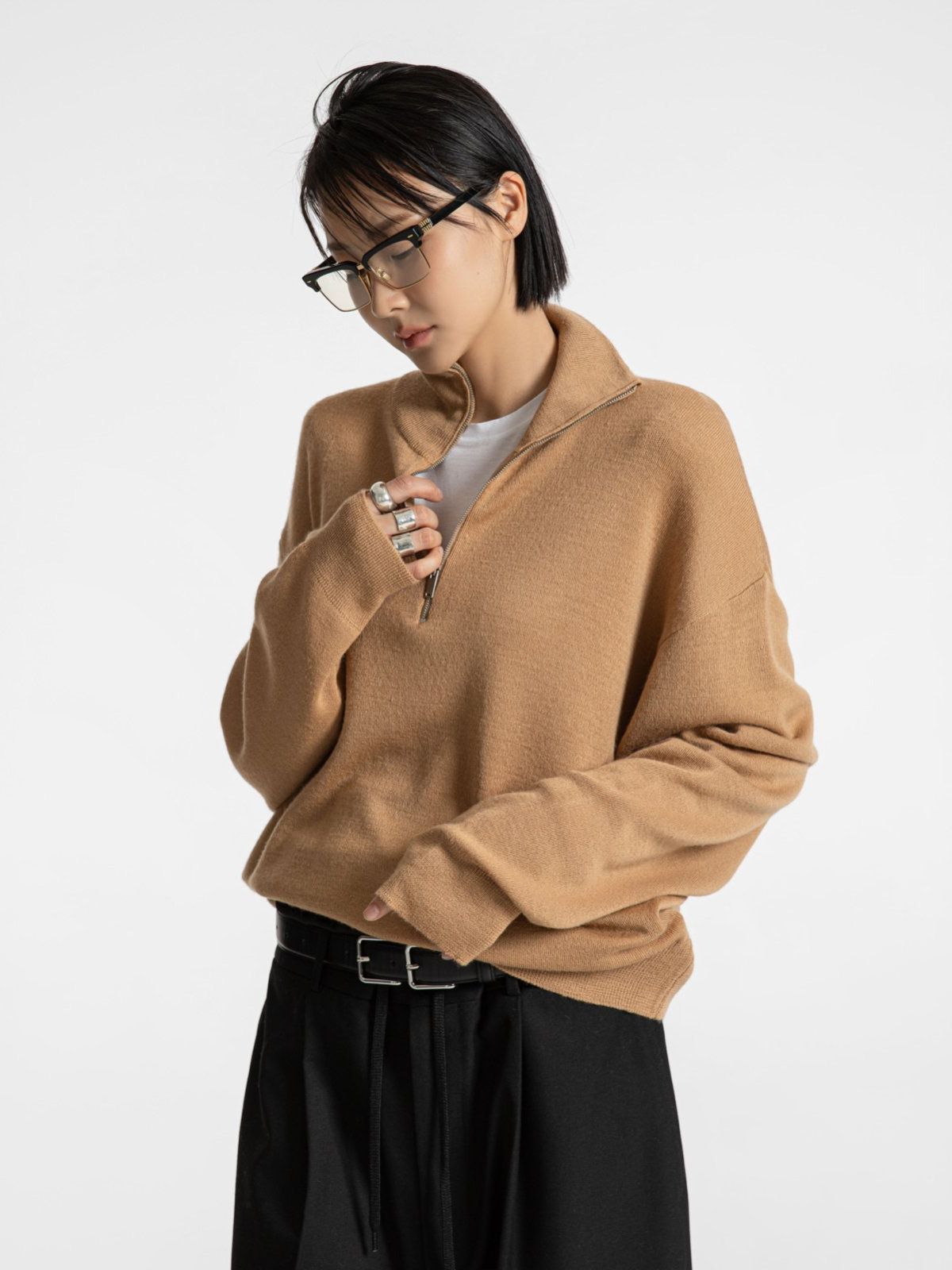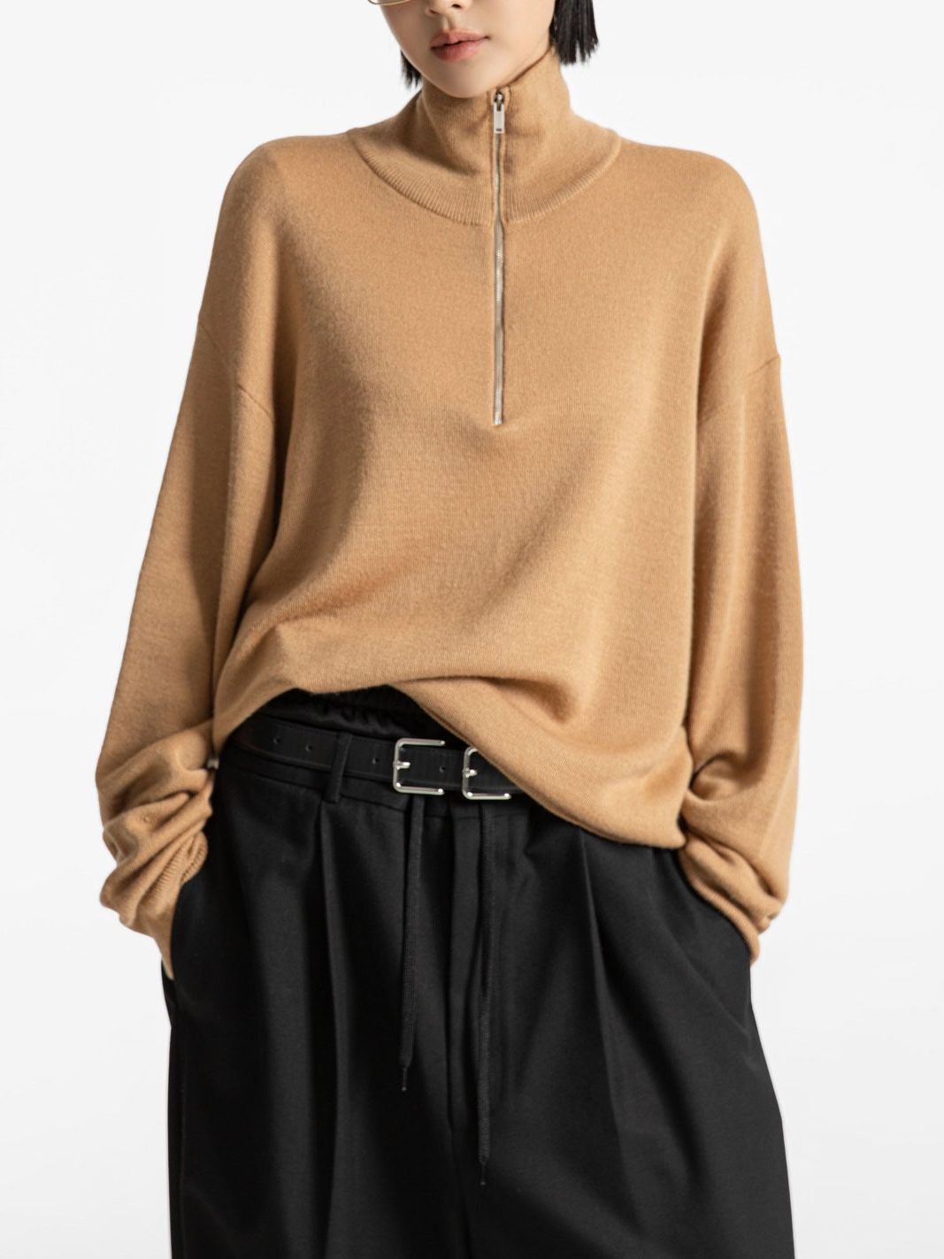 (PAPER MOON) CLASSIC HALF-ZIP KNIT SWEATER : CAMEL BEIGE