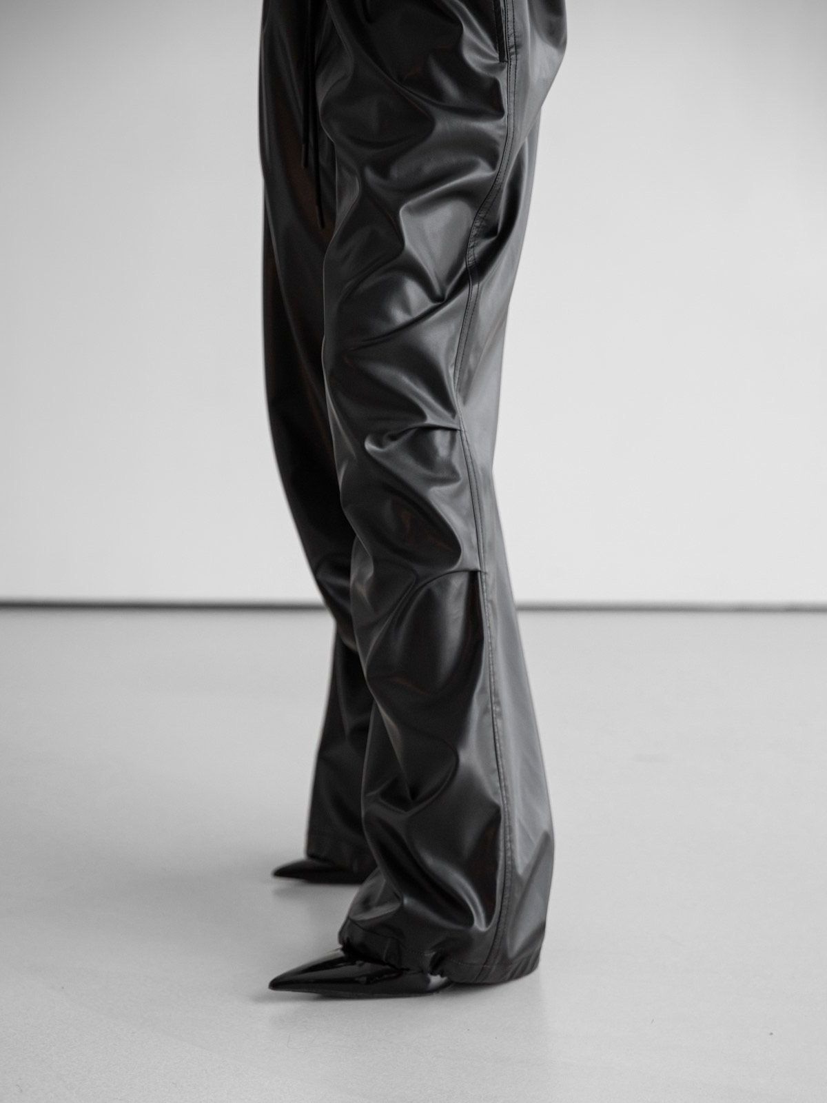 (PAPER MOON) GLOSSY LEATHER WIDE PARACHUTE PANTS : BLACK
