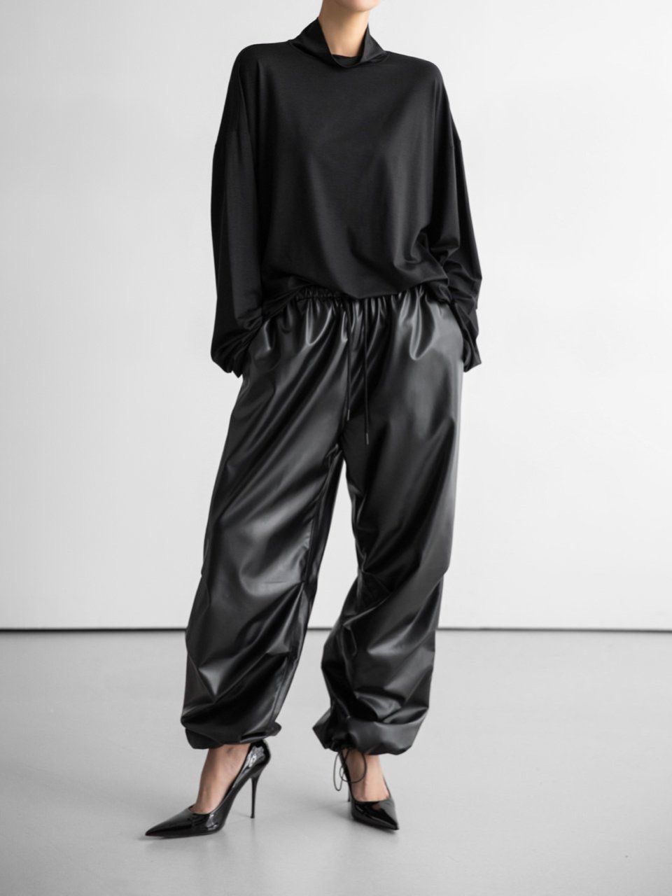 (PAPER MOON) CLASSIC LOOSE FIT TENCEL HALF NECK TOP : BLACK