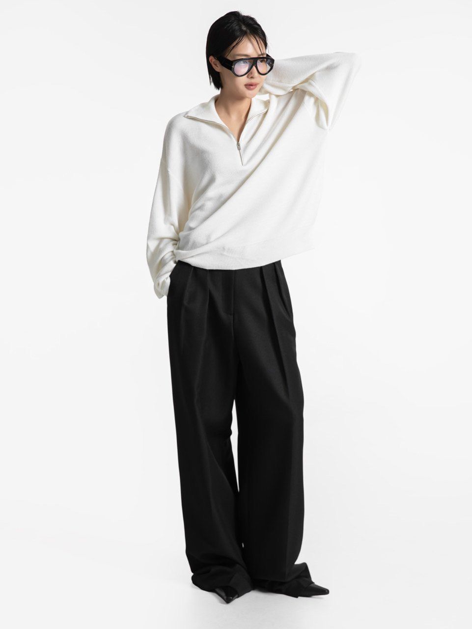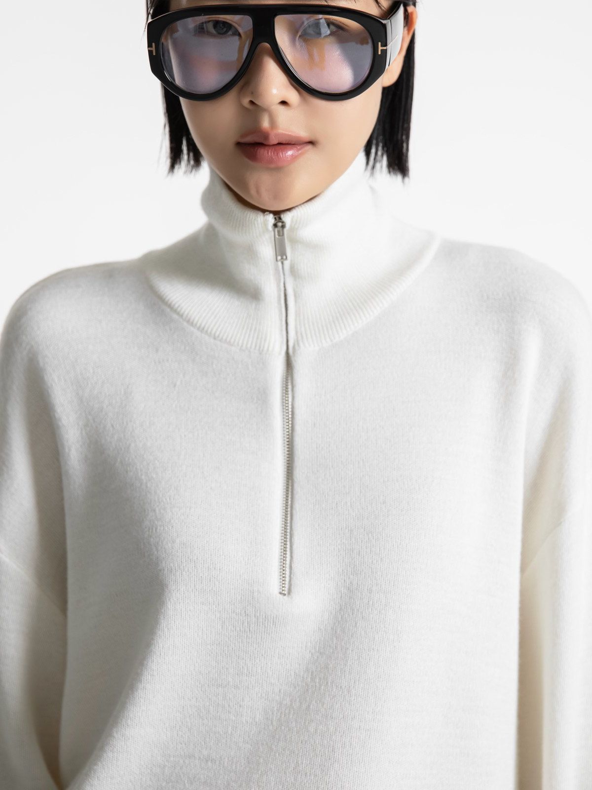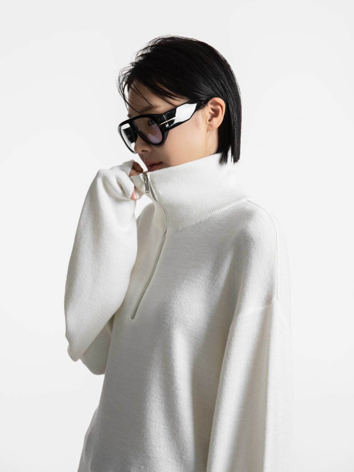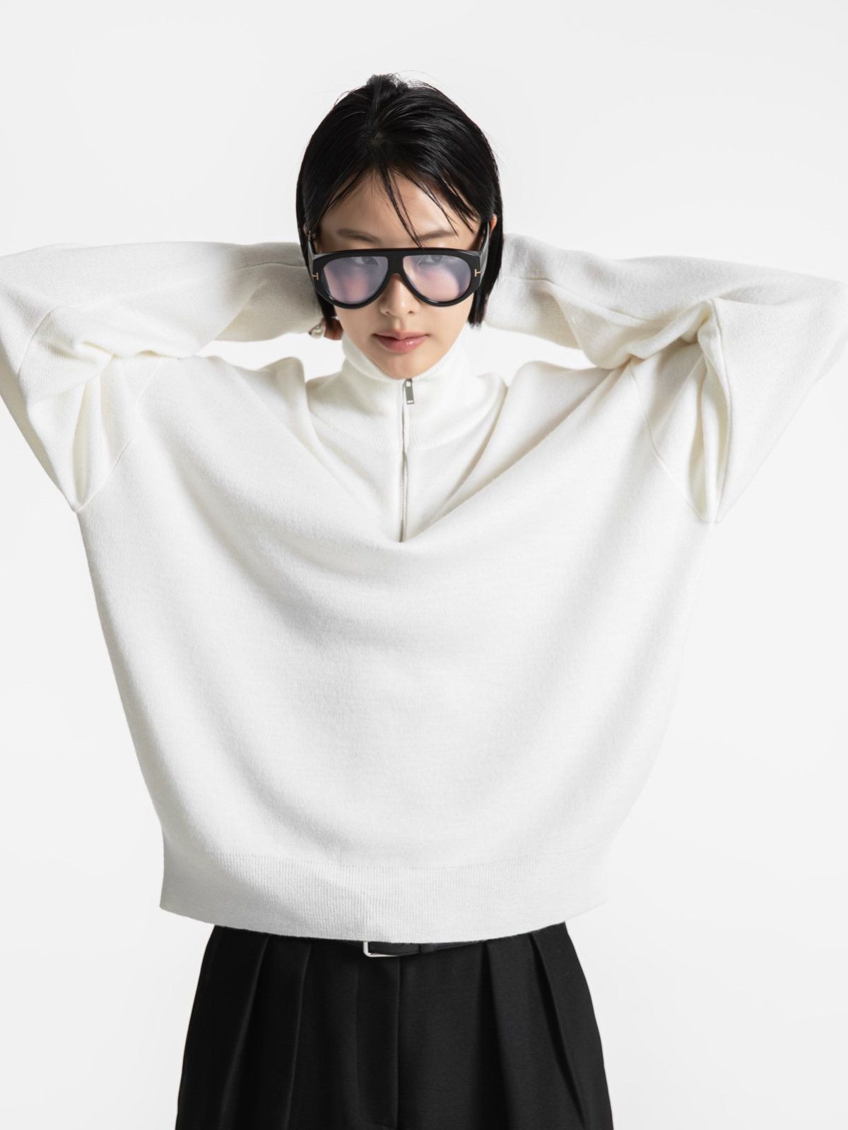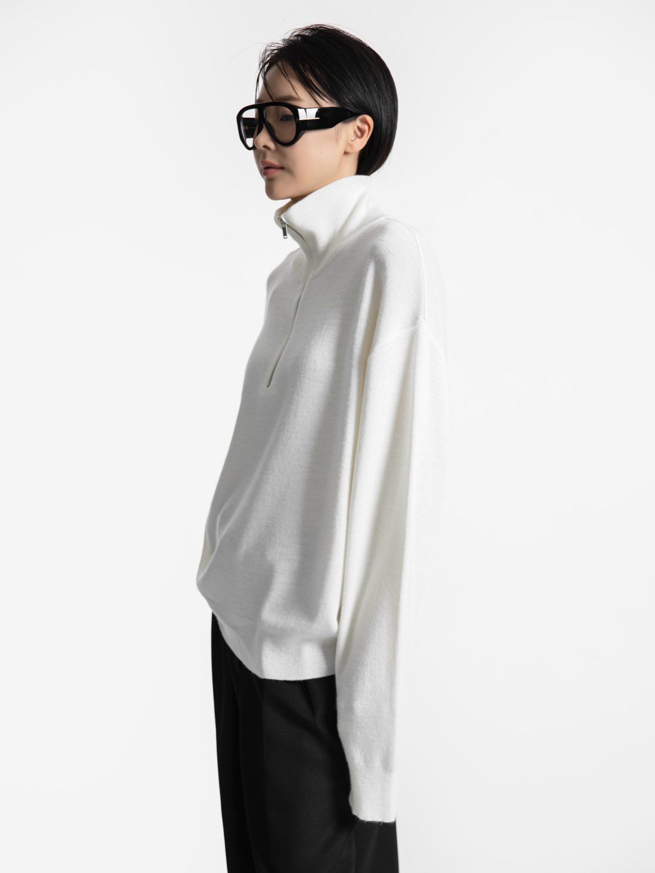 (PAPER MOON) CLASSIC HALF-ZIP KNIT SWEATER : CREAM