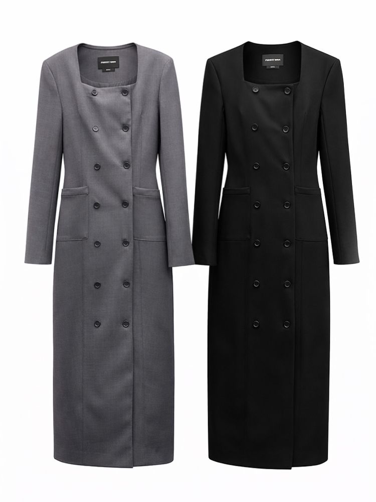 (PROJECT WAVE) COIN MAXI BUTTON DRESS : CHARCOAL