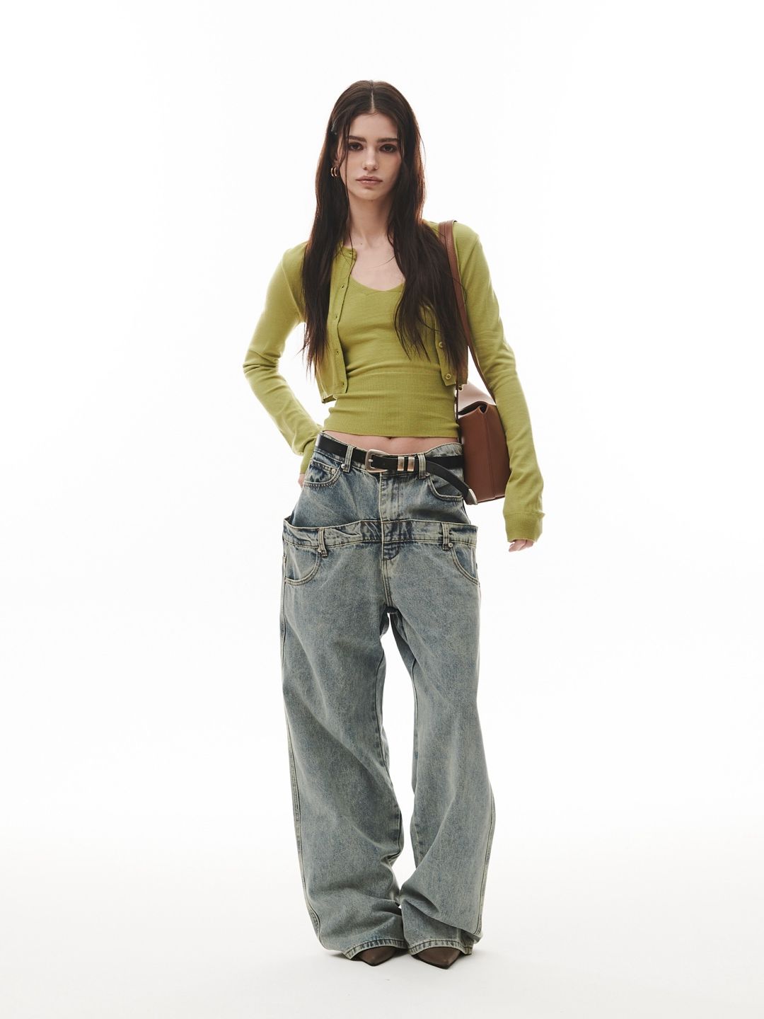 (PROJECT WAVE) DUO HALTER CARDIGAN KNIT SET : OLIVE