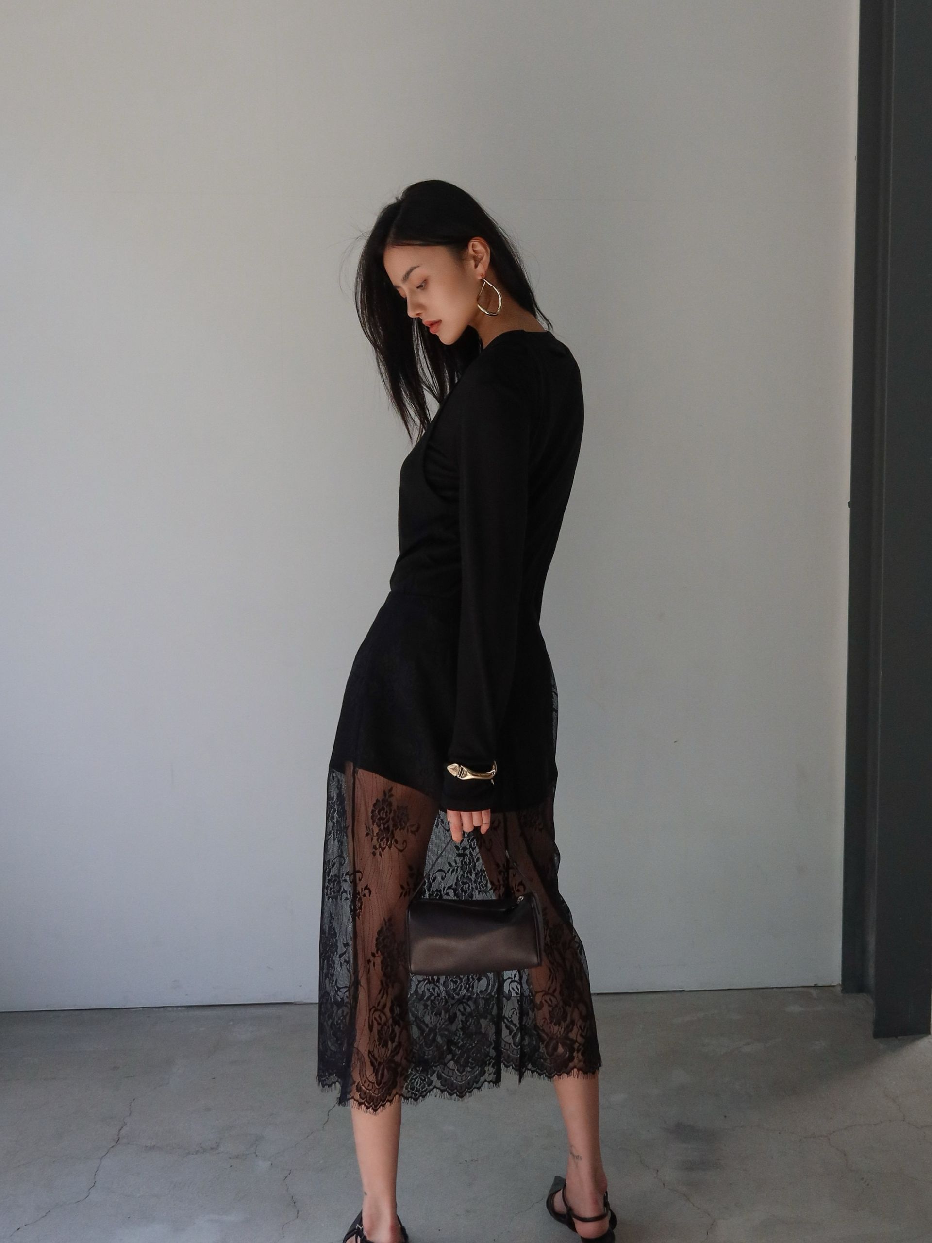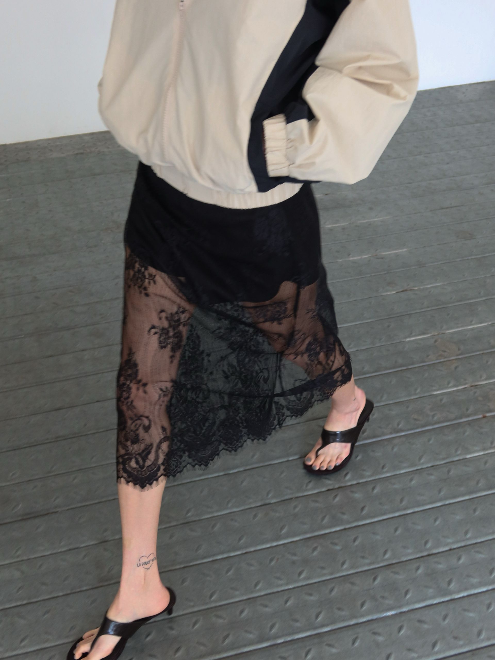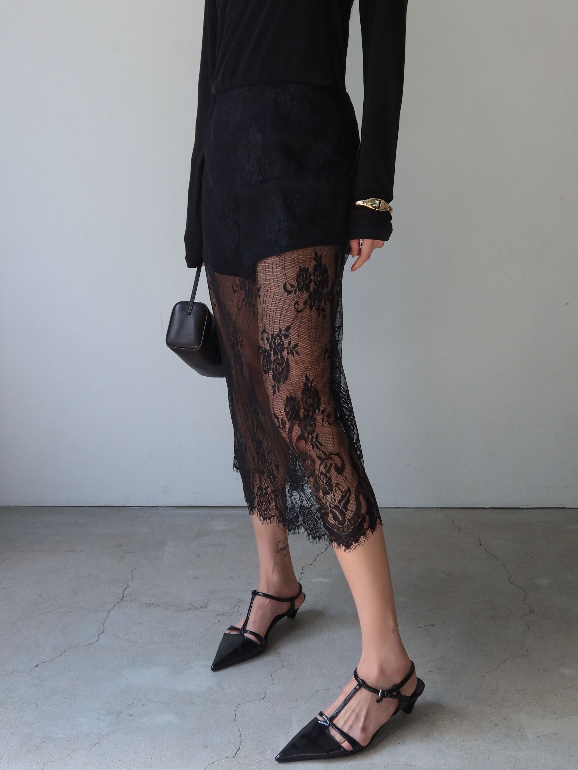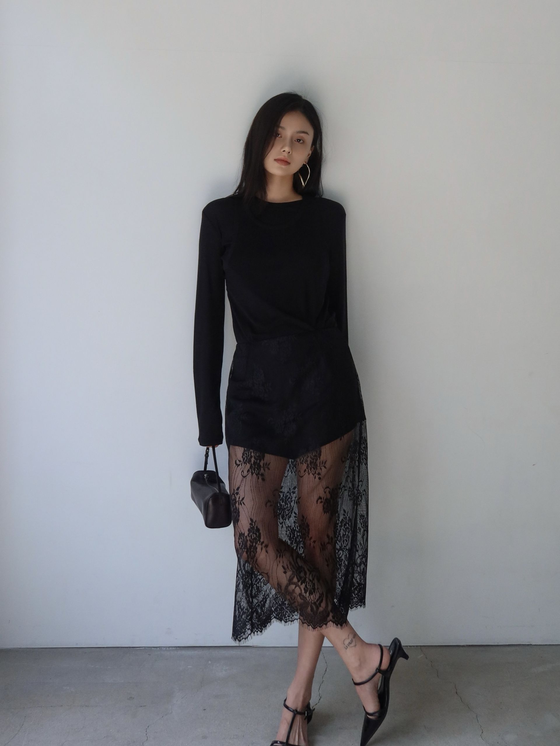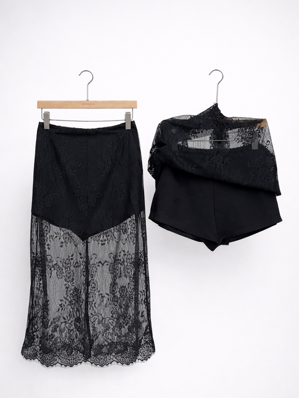 (BESIDE YOU) LACE OVERLAY SHORTS SKIRT : BLACK