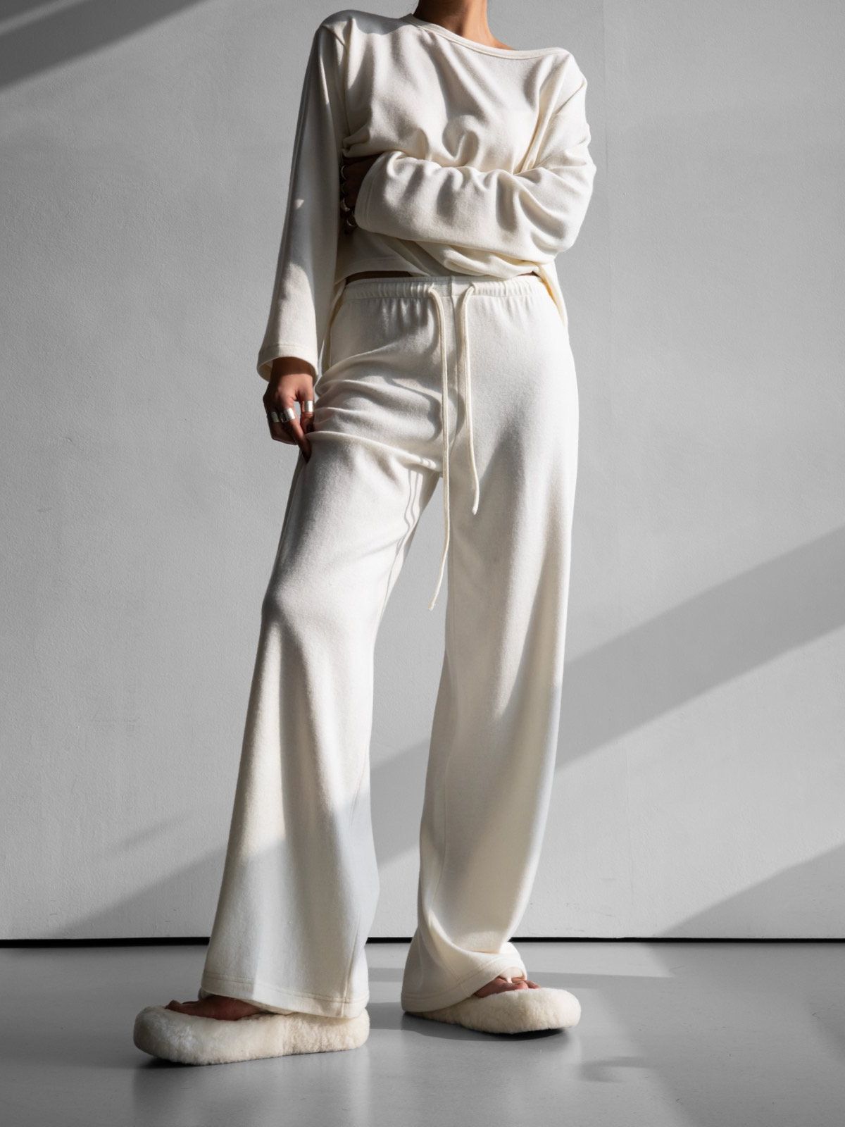 (PAPER MOON) SOFT LOUNGE SET - UP WIDE PANTS : CREAM