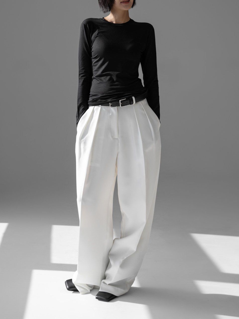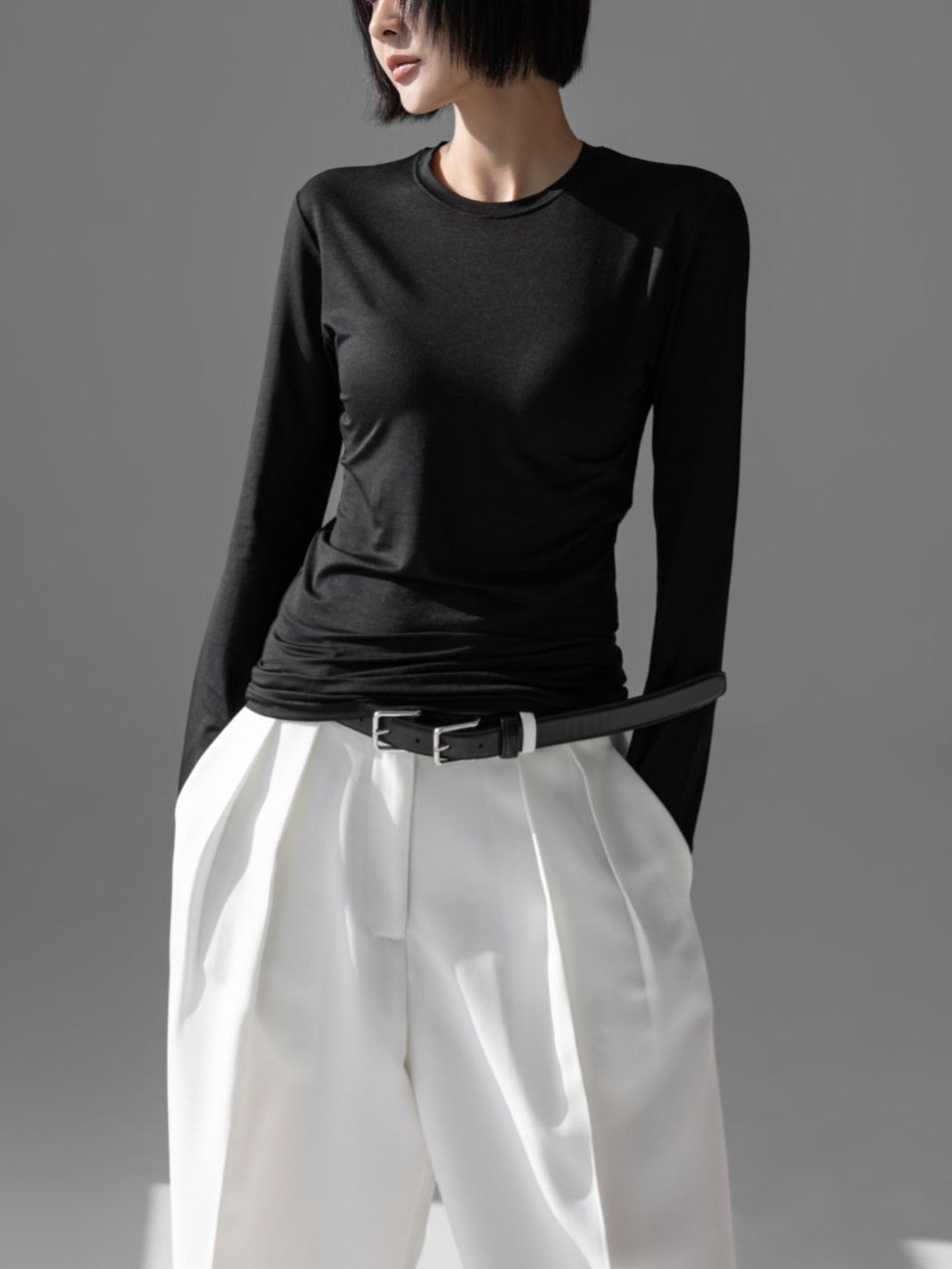 (PAPER MOON) CLASSIC SLIM FIT TENCEL CREW NECK TOP : BLACK