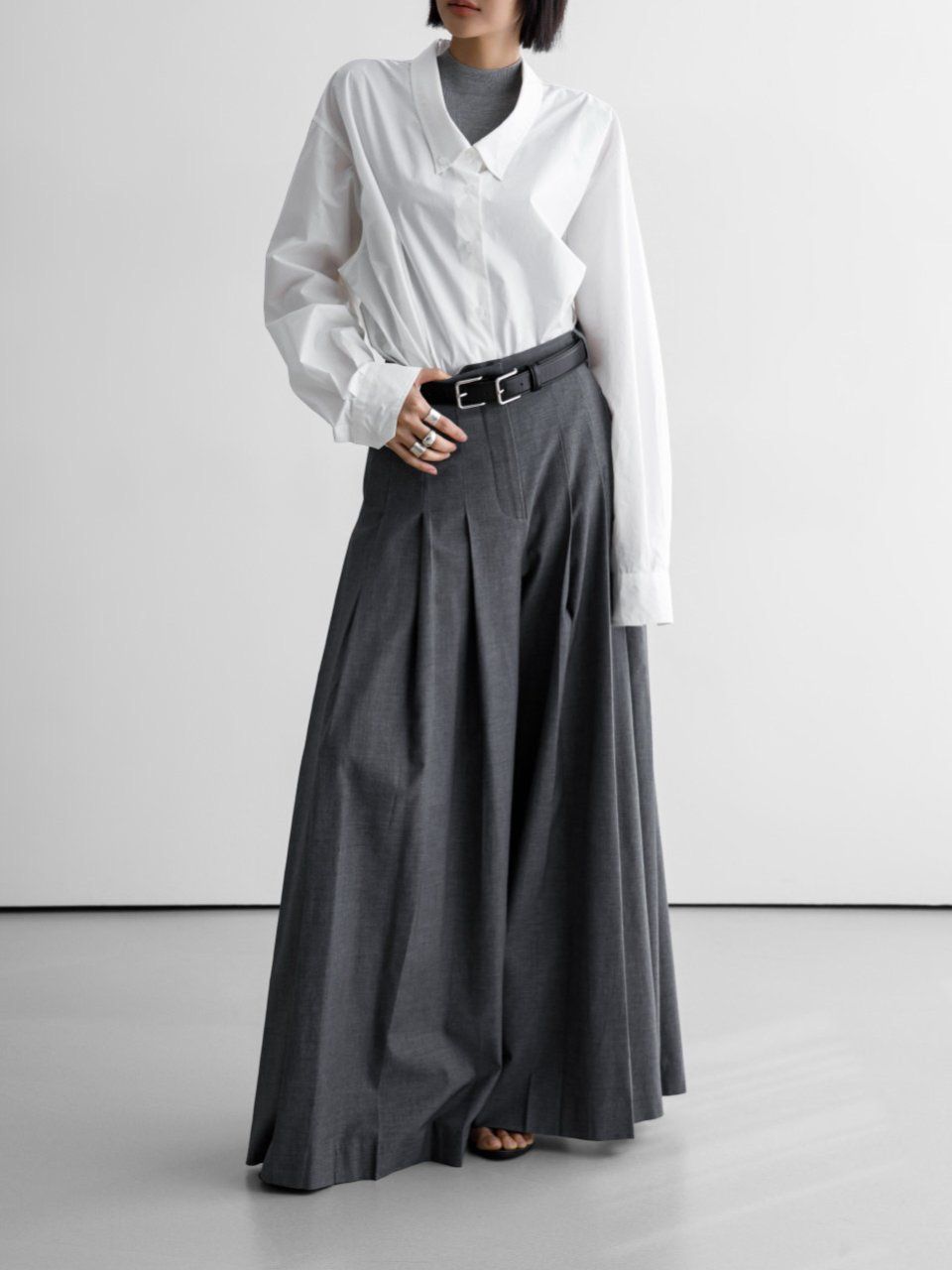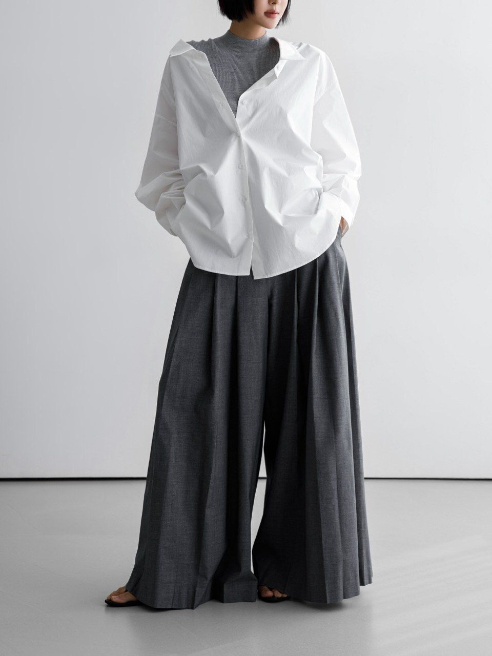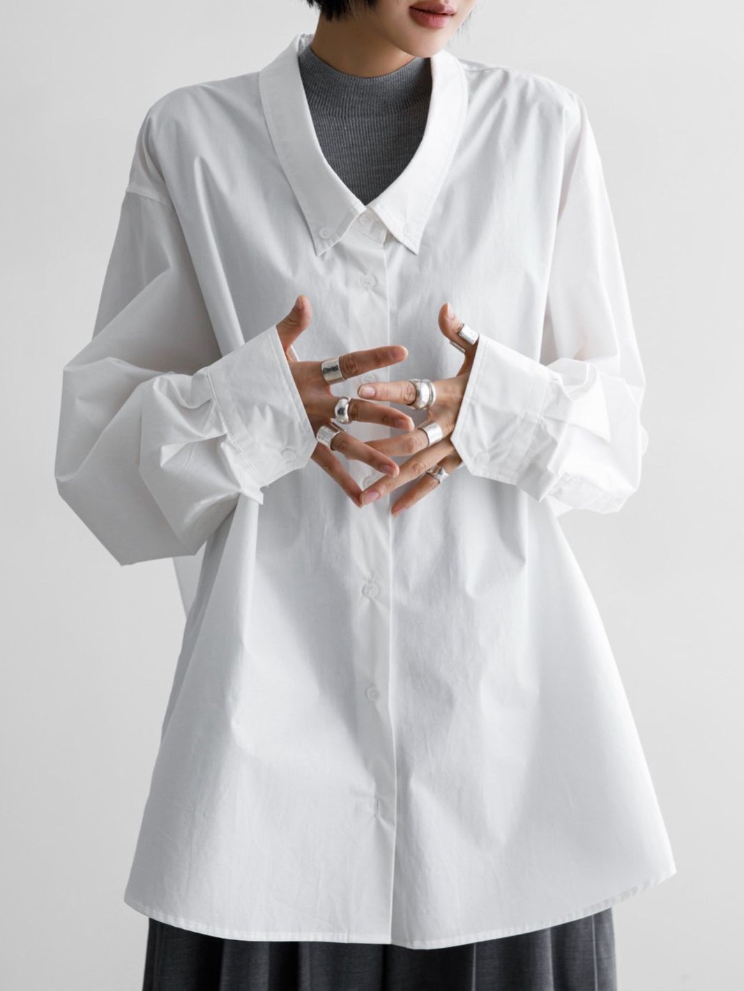 (PAPER MOON) LOW COLLAR POINT PAPER BUTTON DOWN SHIRT : WHITE